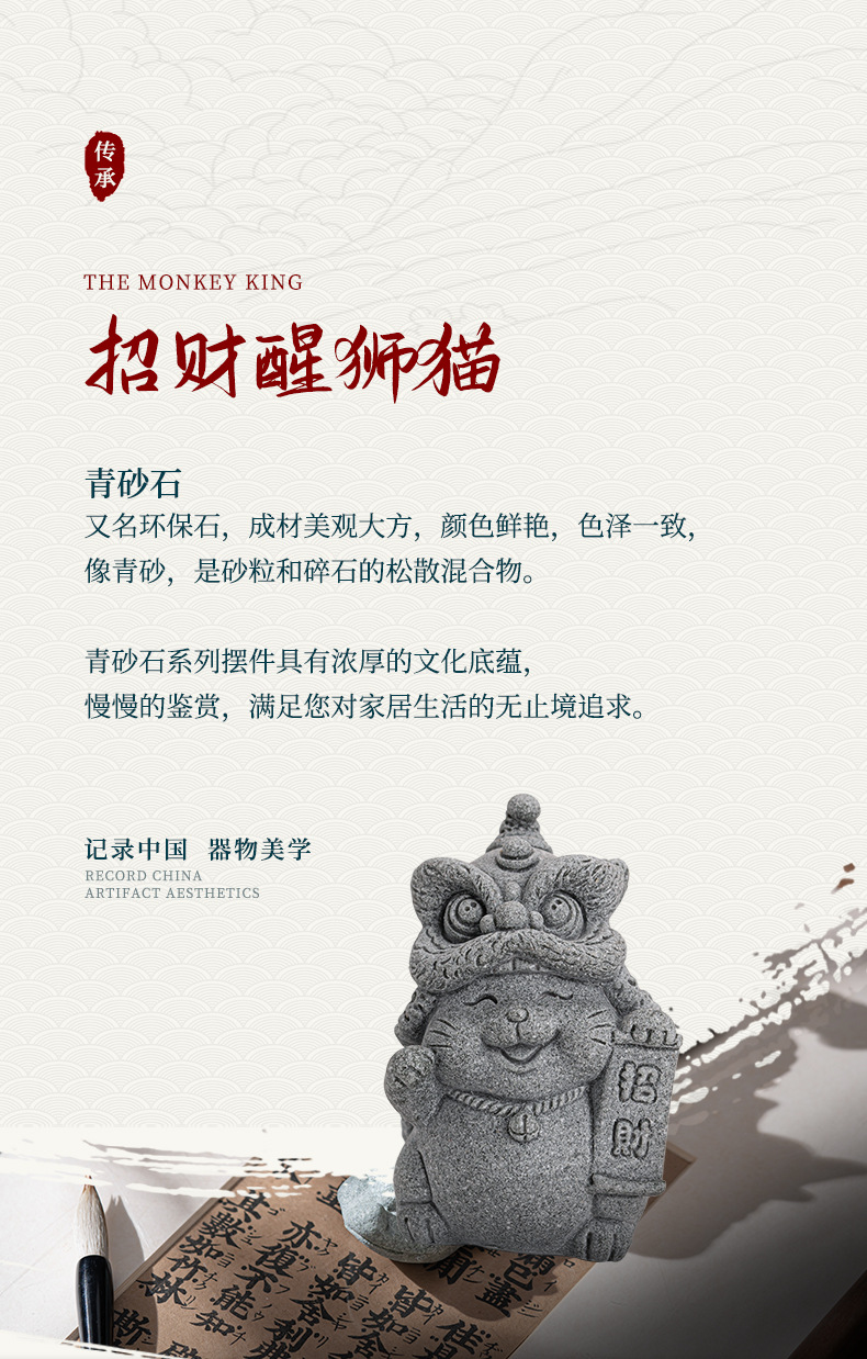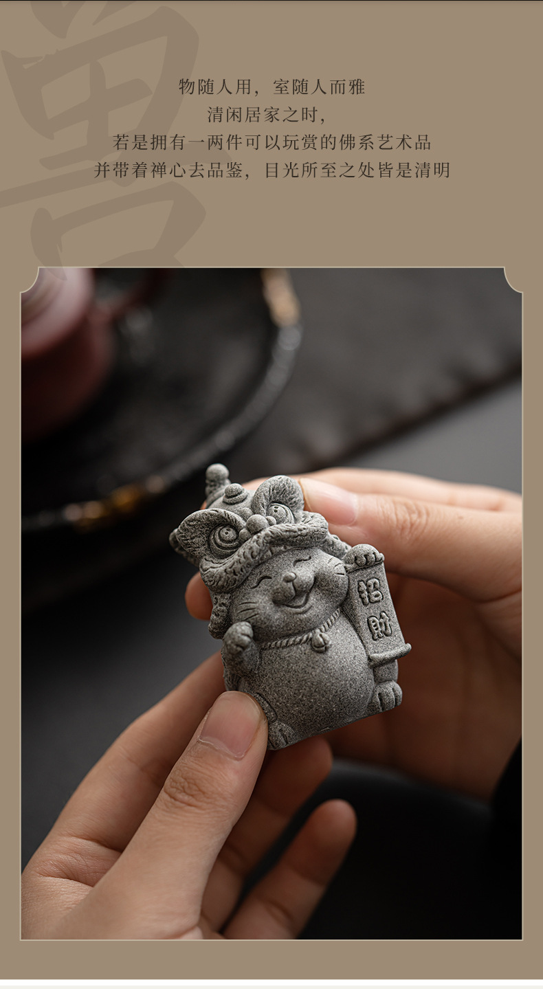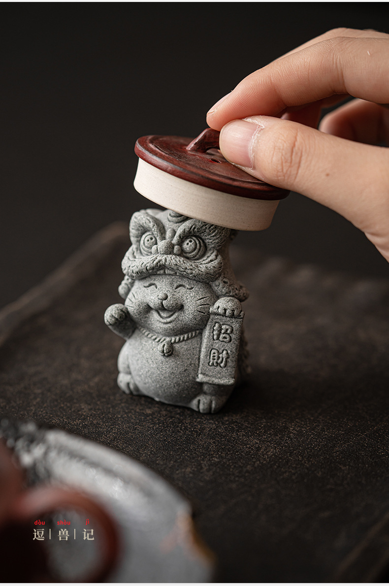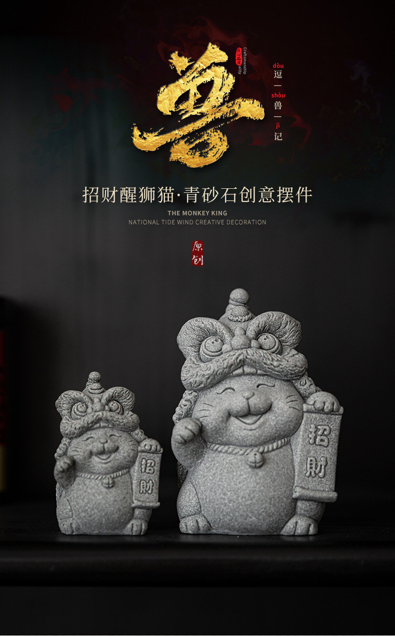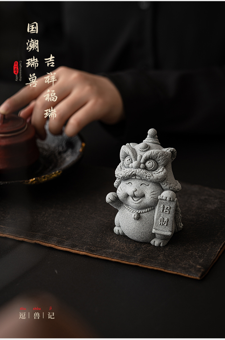 전국 조수 사자 각성 행운의 고양이 장식품 데스크탑 장식 차 애완 동물 개체 공예 원예 분재 장식품 어항 조경스토어 가기
