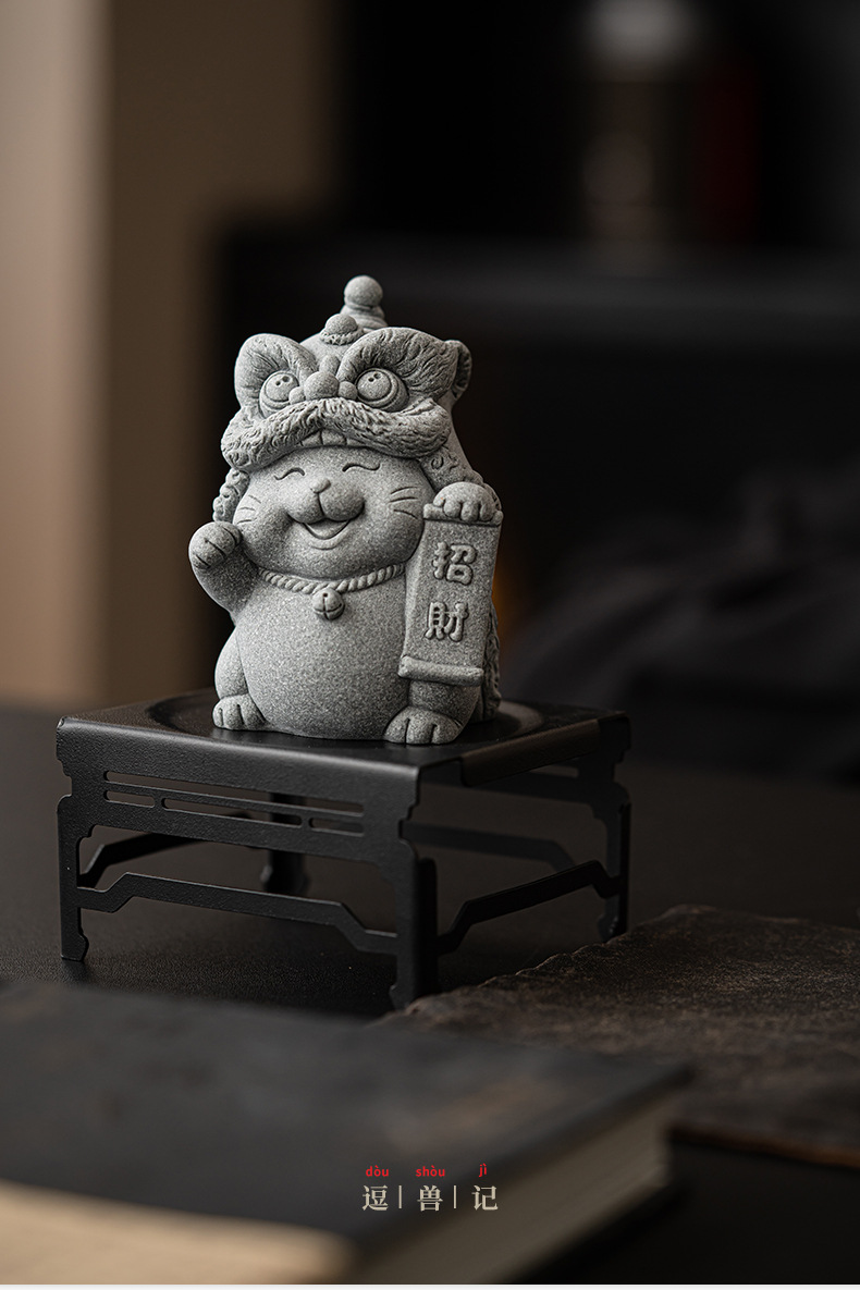 전국 조수 사자 각성 행운의 고양이 장식품 데스크탑 장식 차 애완 동물 개체 공예 원예 분재 장식품 어항 조경