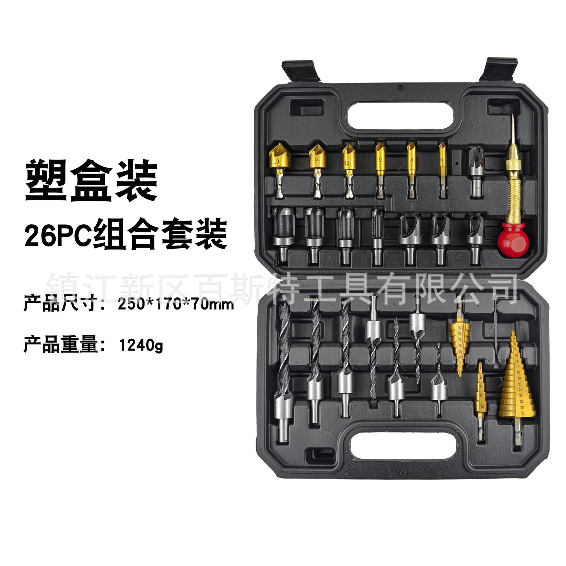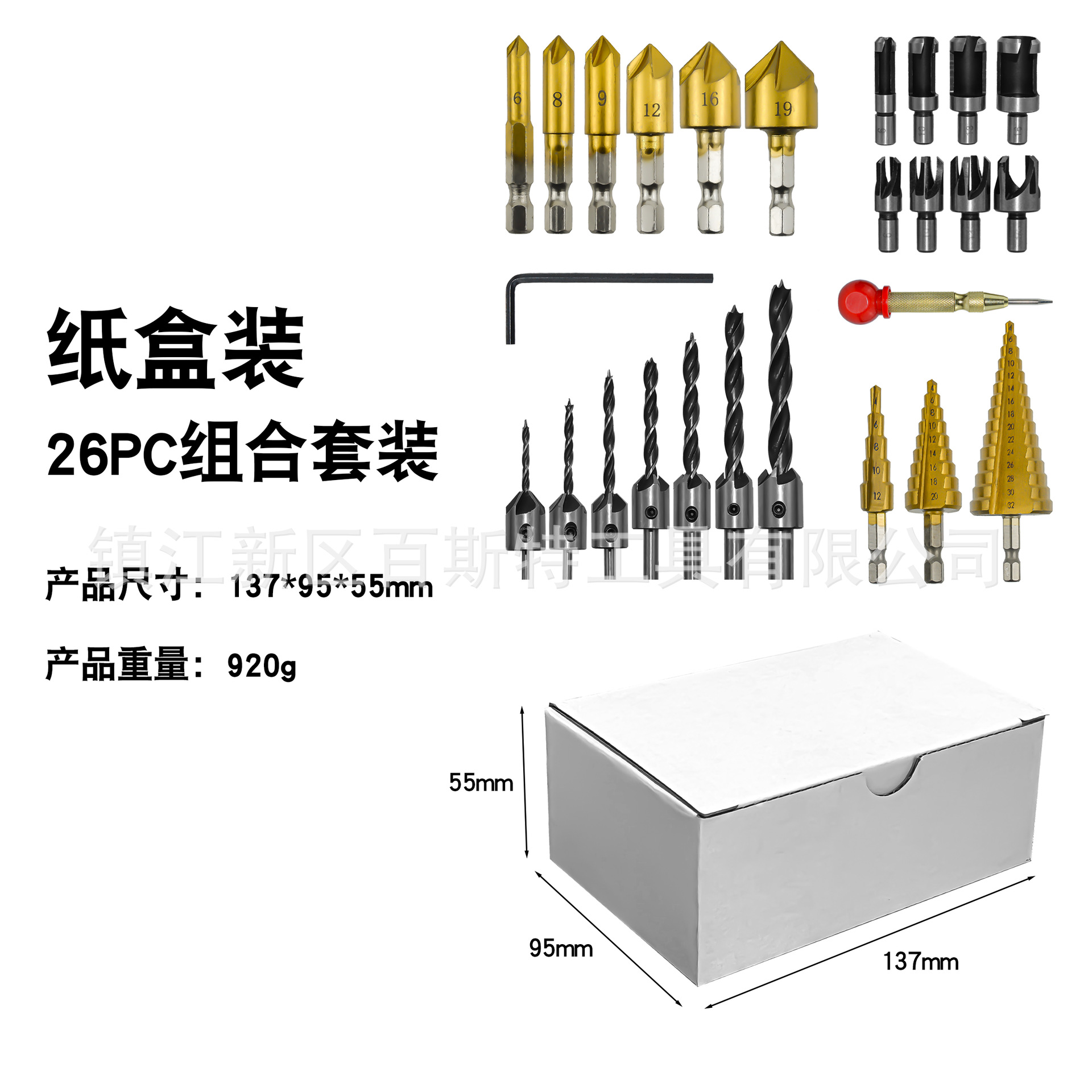 26 피스 모따기 플러그 드릴 센터 펀치 목공 드릴 탑 드릴 비트 조합 세트