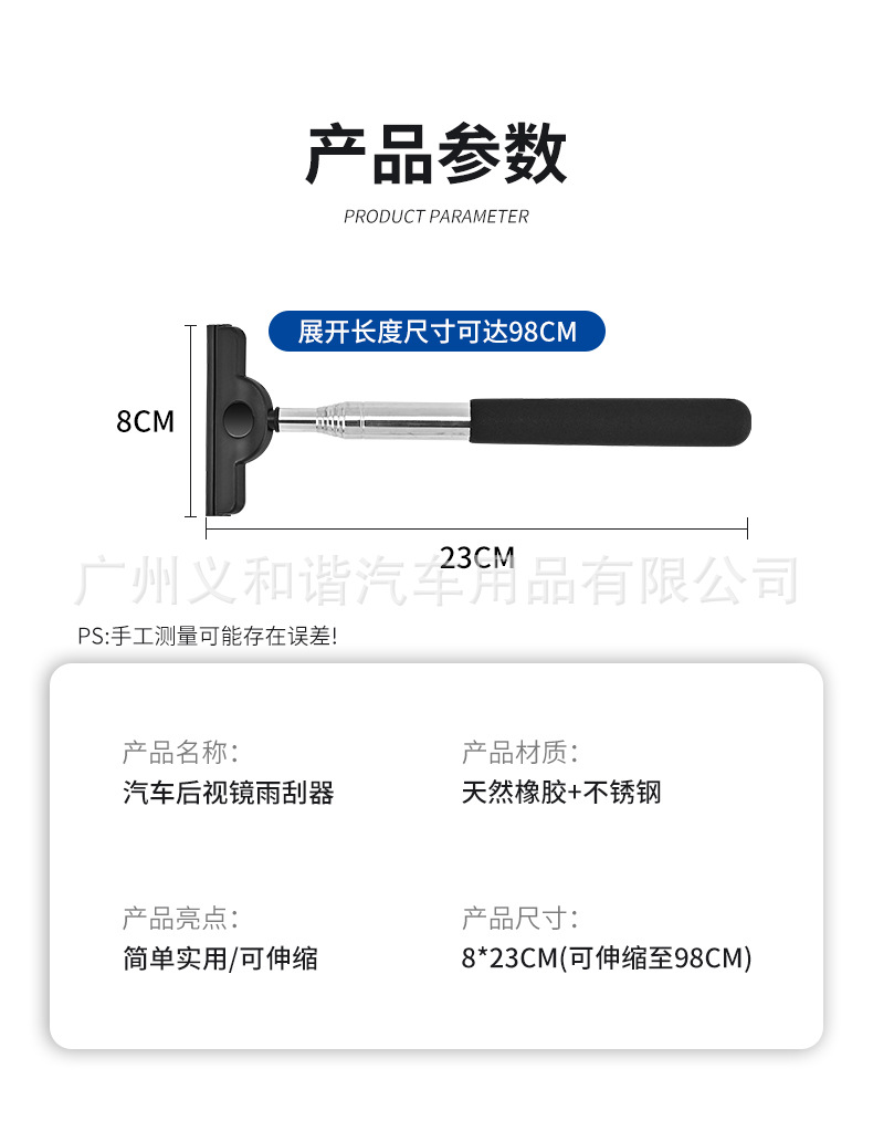 자동차 백미러 와이퍼 스테인레스 스틸 텔레스코픽 와이퍼 스트립 창 유리 청소 브러시 제거 와이퍼 청소 자동차