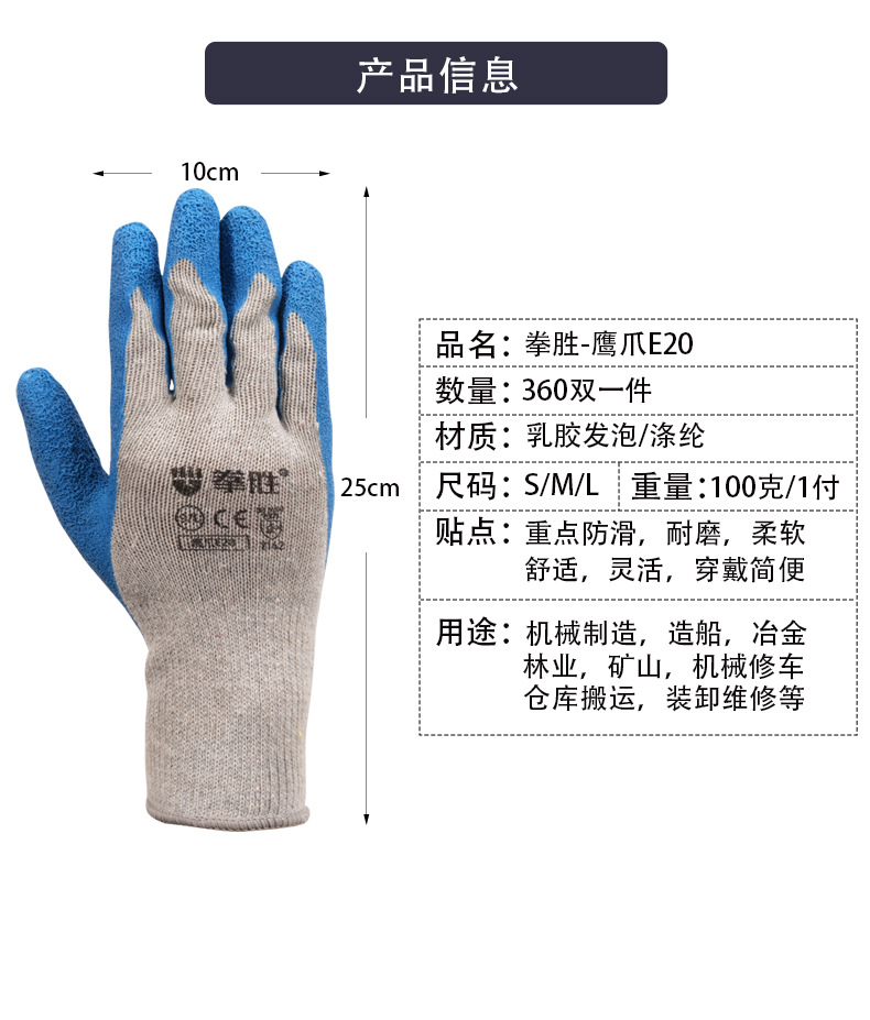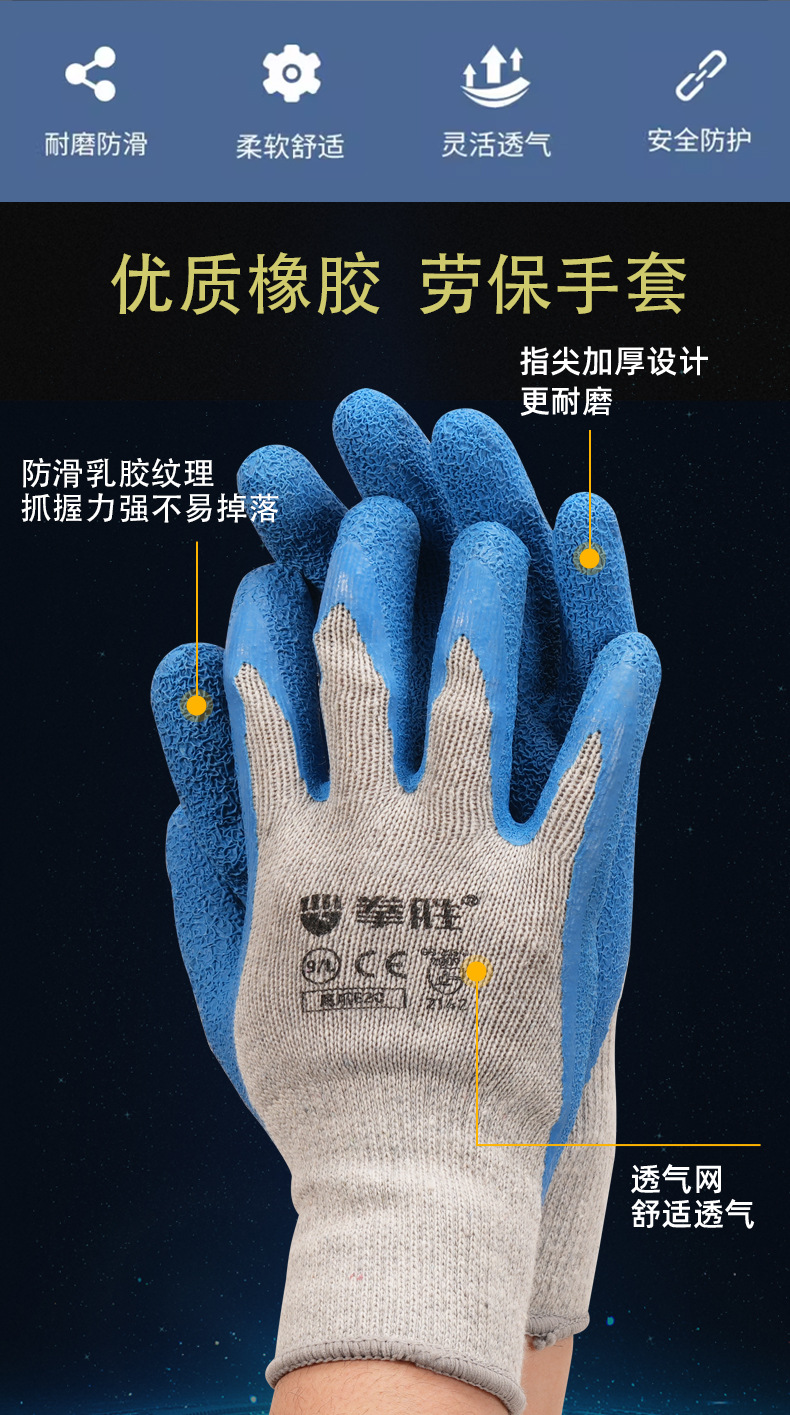 Qusheng E20 장갑 접착제 담근 주름 미끄럼 방지 안티 커팅 엄지 모든 포장 고무 작업 장갑스토어 가기