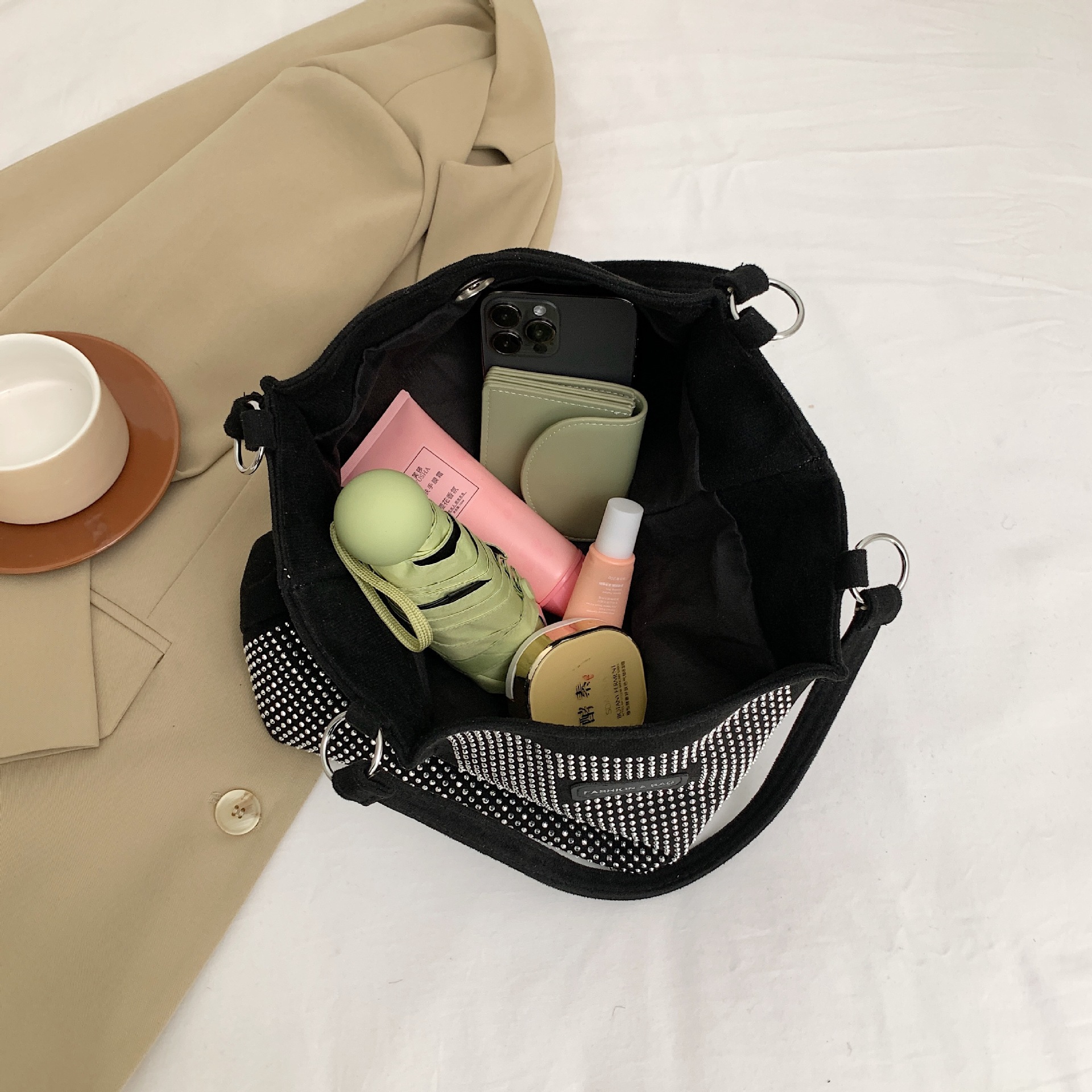 대용량 가방 여성 가방 2024 새로운 유행 밝은 다이아몬드 하이 엔드 커밍 숄더 백 인기있는 올 매치 토트 백스토어 가기