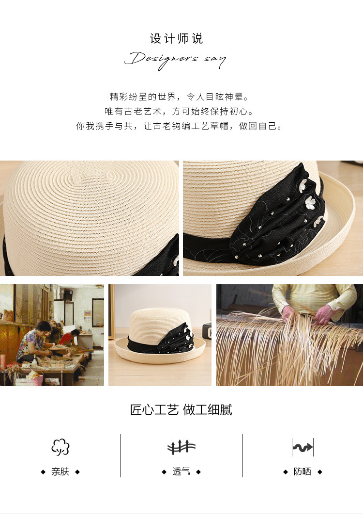 부타 패션 올 매치 봄 여름과 가을 햇빛 밀짚 모자 선스크린 우아한 탑 모자 햇빛 모자 해변 태양 모자 PT1252