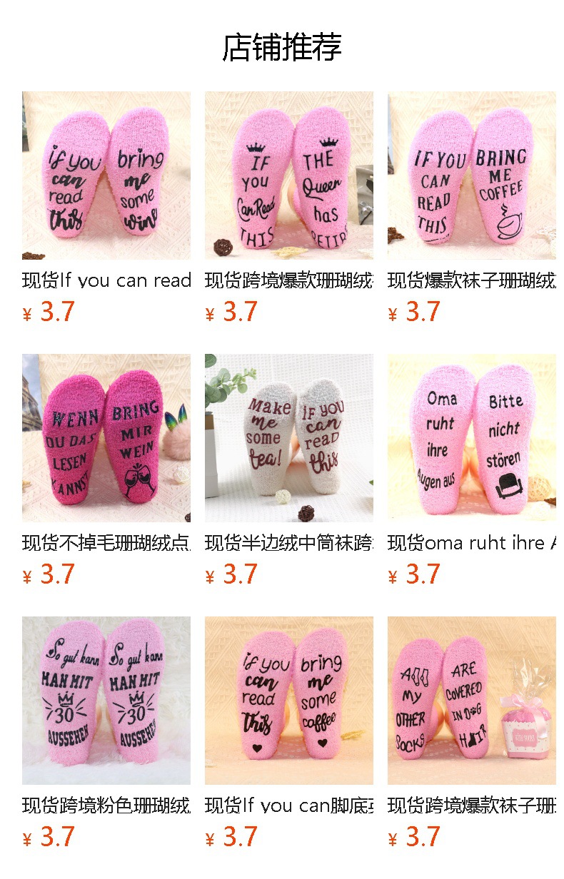 크리스마스 인기 상품, 흘러내림 방지 중간 길이의 미끄럼 방지 점착 스티커가 있는 코랄 벨벳 양말, 유럽 및 미국 전용.스토어 가기