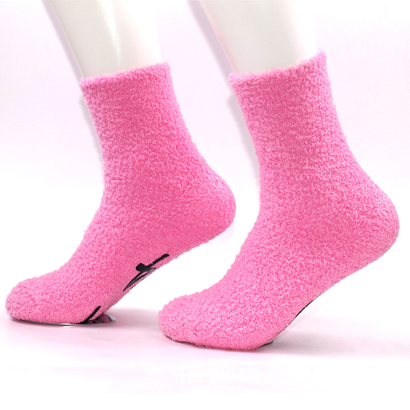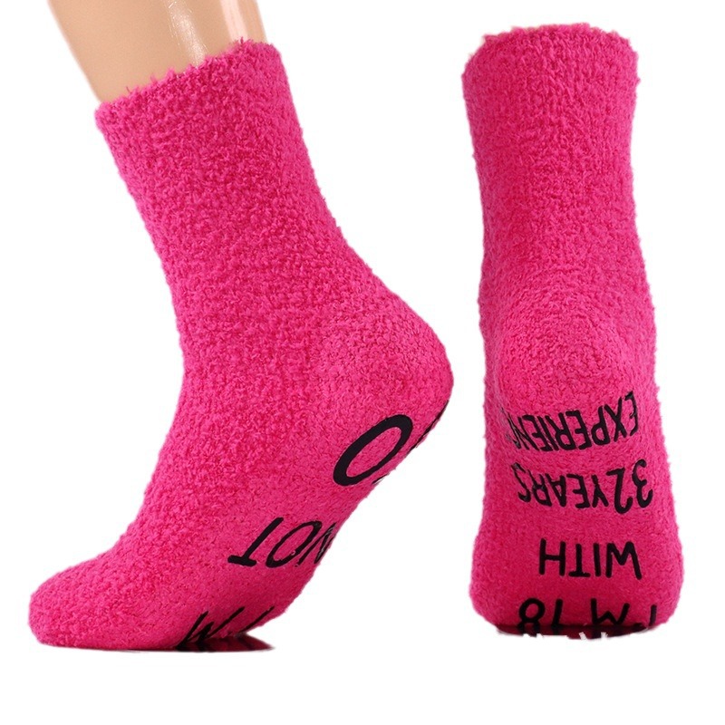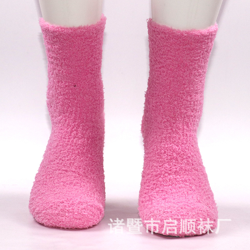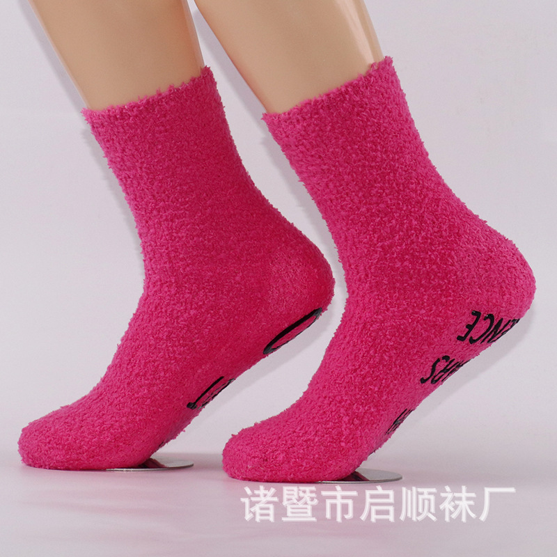 크리스마스 인기 상품, 흘러내림 방지 중간 길이의 미끄럼 방지 점착 스티커가 있는 코랄 벨벳 양말, 유럽 및 미국 전용.