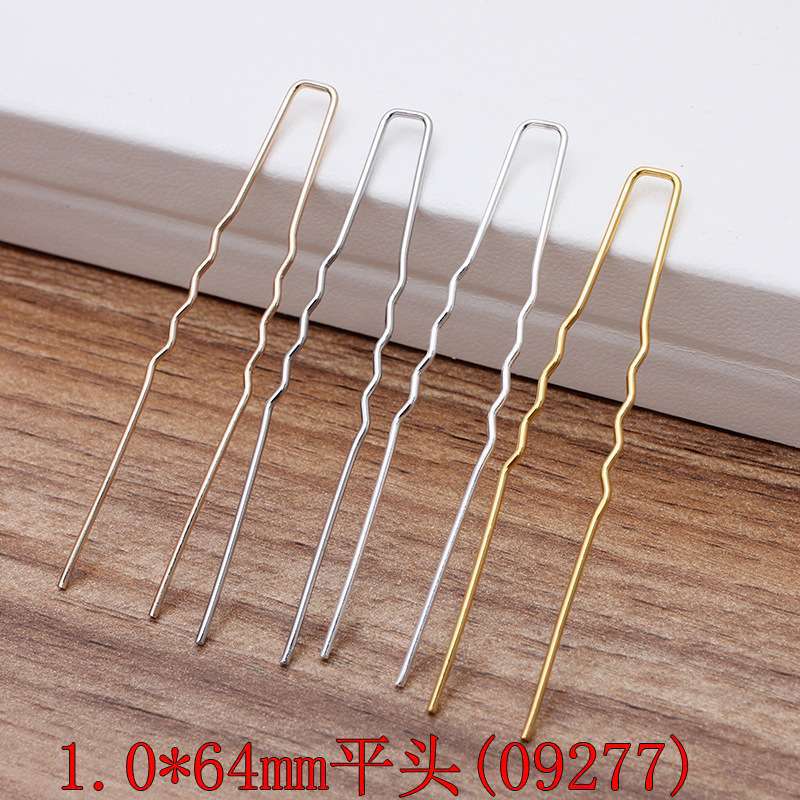 • 라운드 헤드 웨이브 U 자형 헤어핀 색상 유지 스트레이트 골드 1x64mm