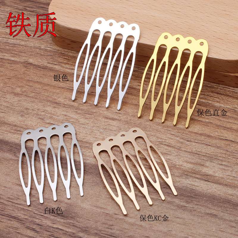 • 높이 약 40mm 및 폭 약 26mm 스트레이트 골드 구멍 머리 빗 색상 유지 5 개 치아
