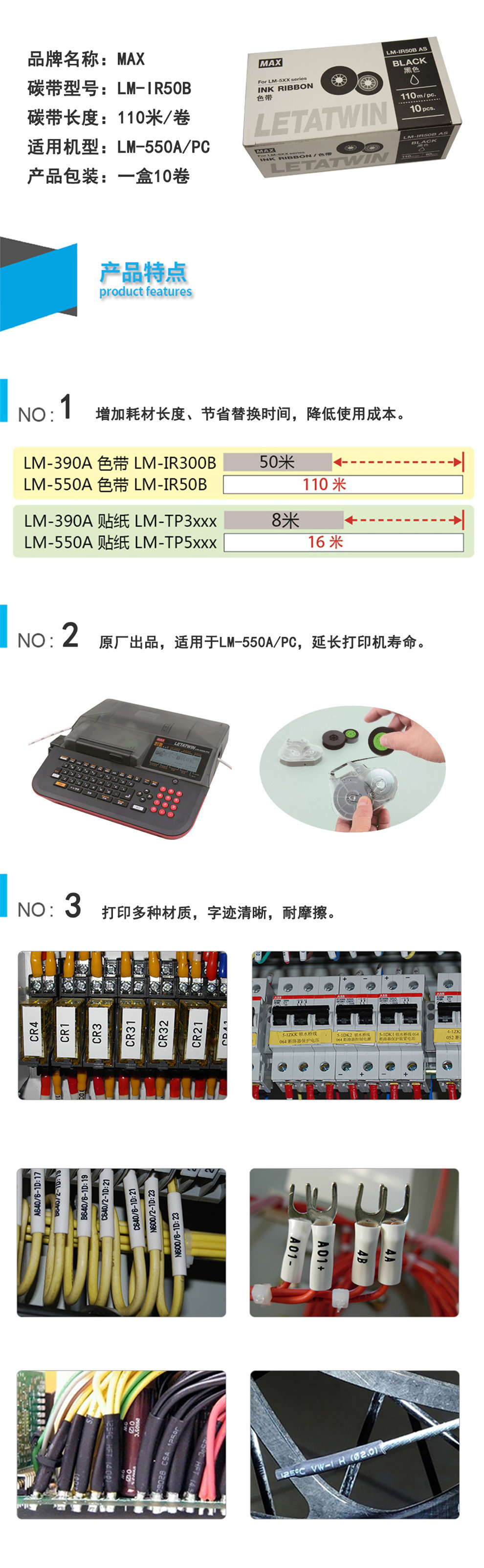 MAX 라인 번호 기계 LM-550A 블랙 탄소 리본 LM-IR50B 원래 리본 550E 열 수축 튜브 리본 550E