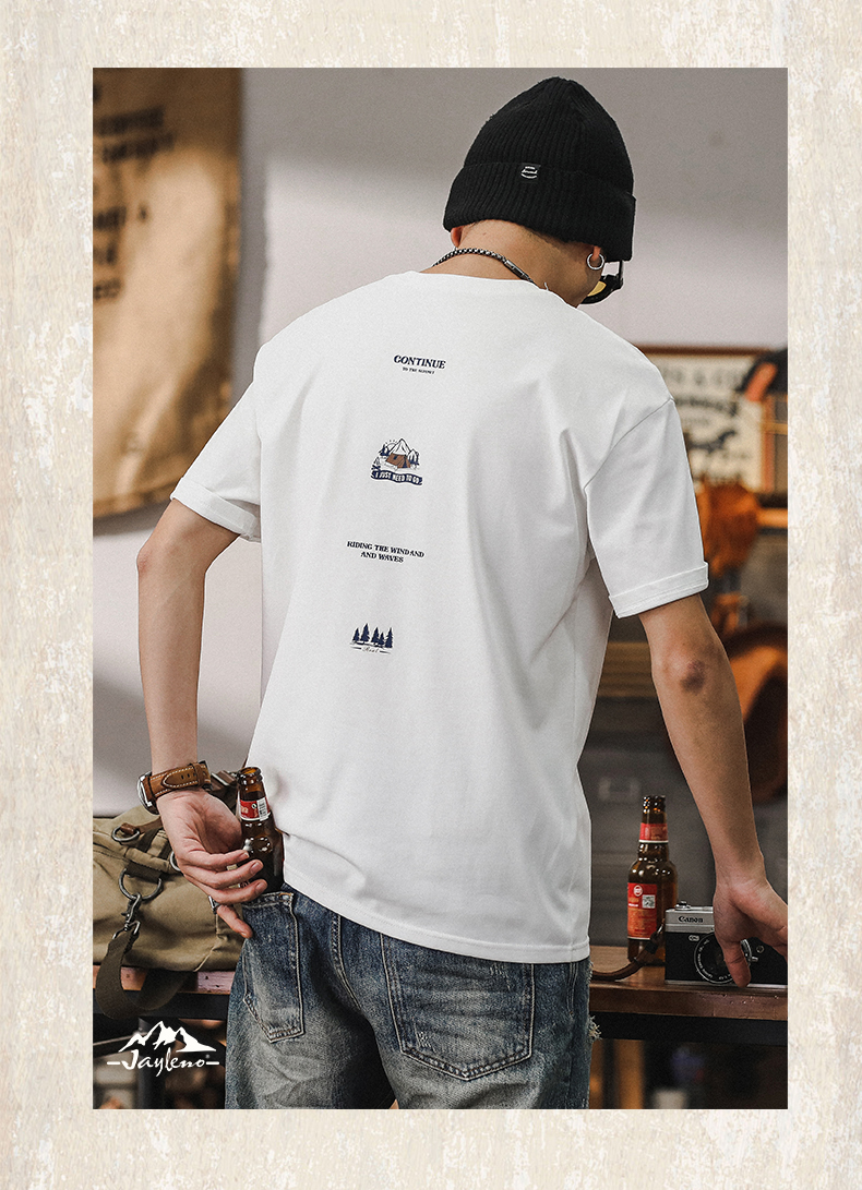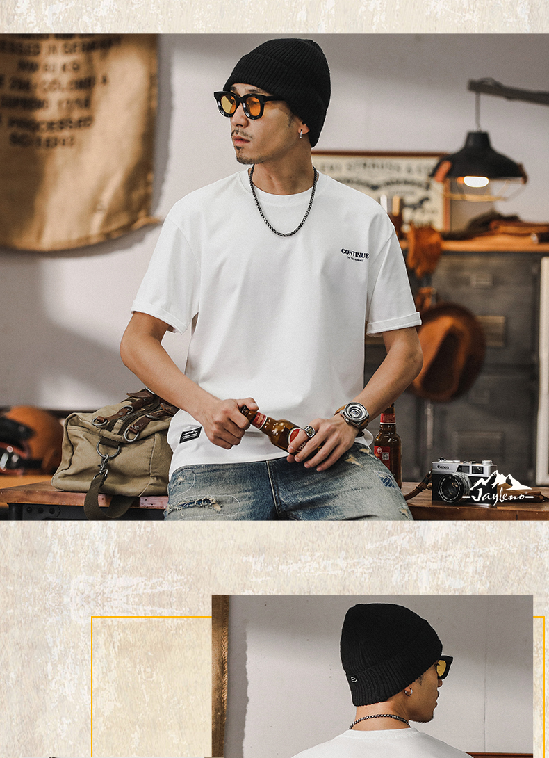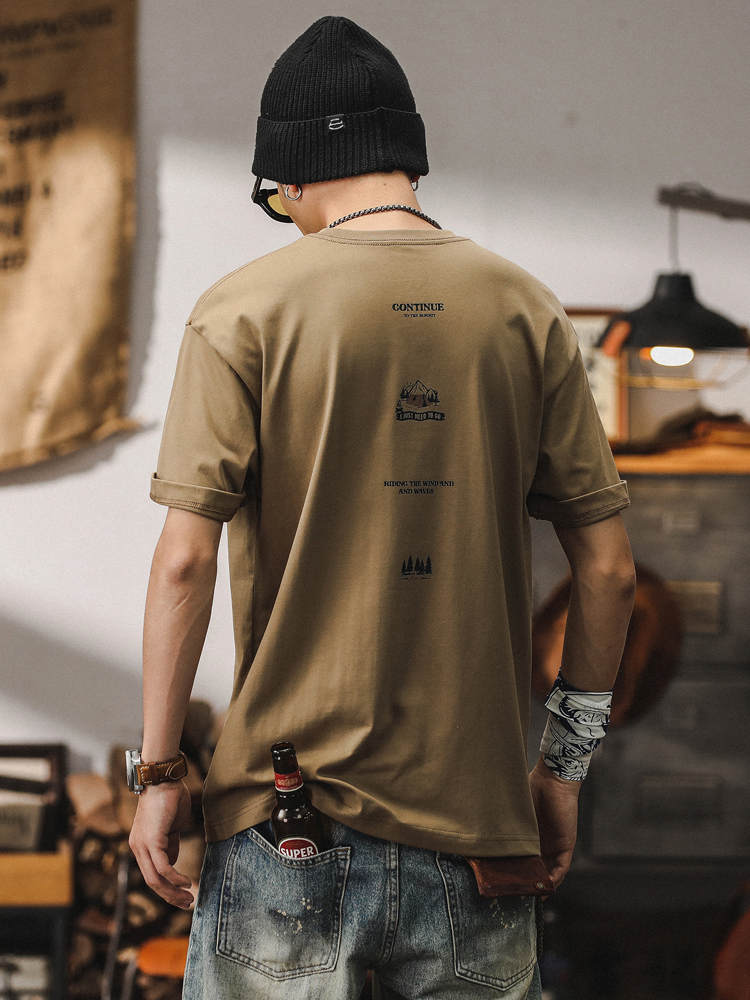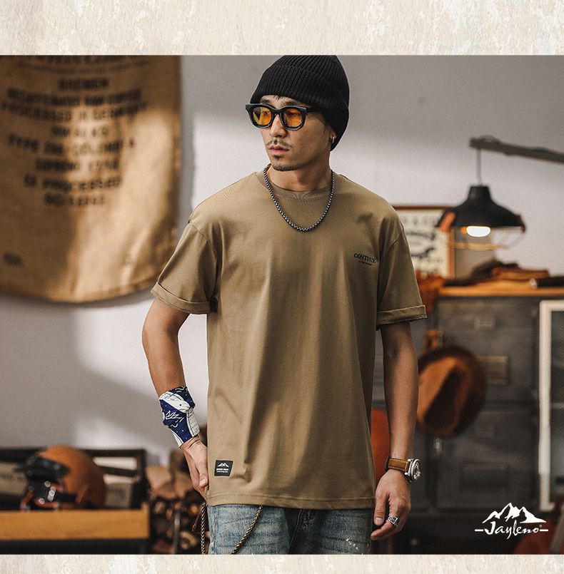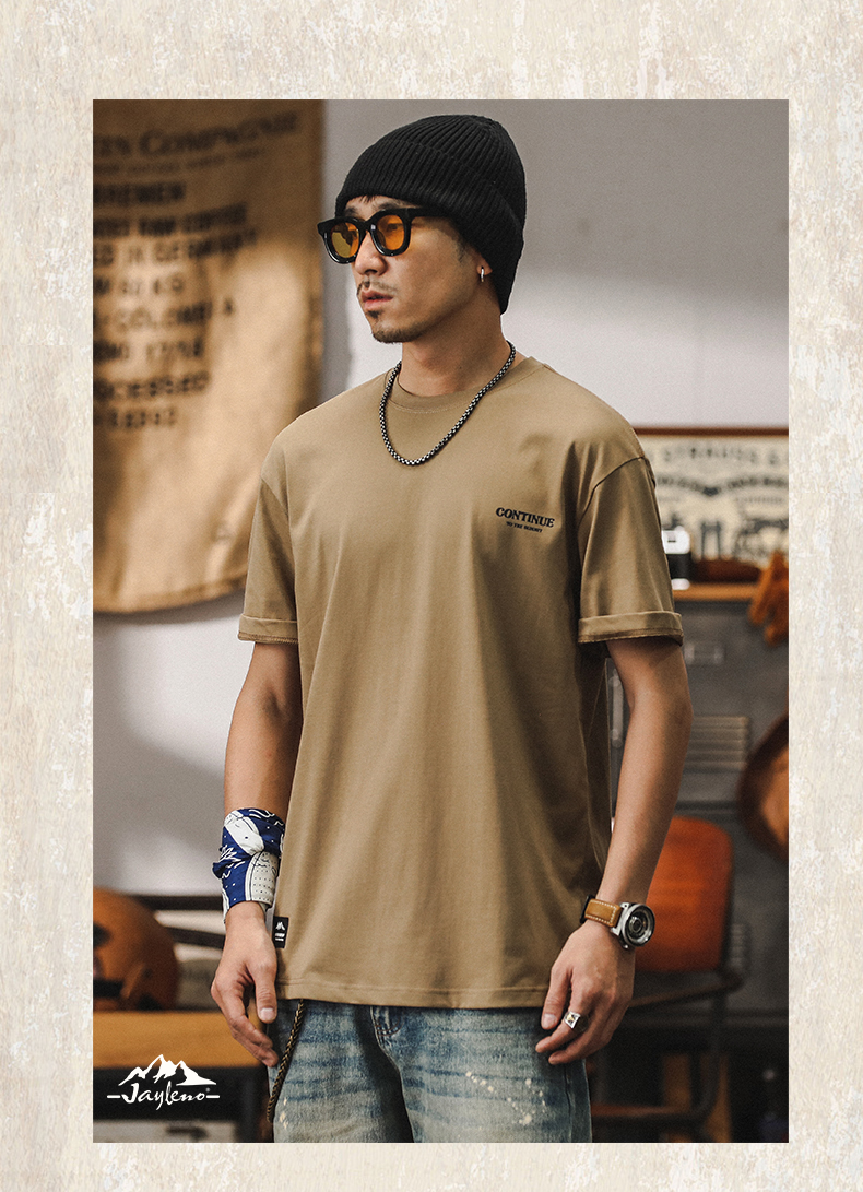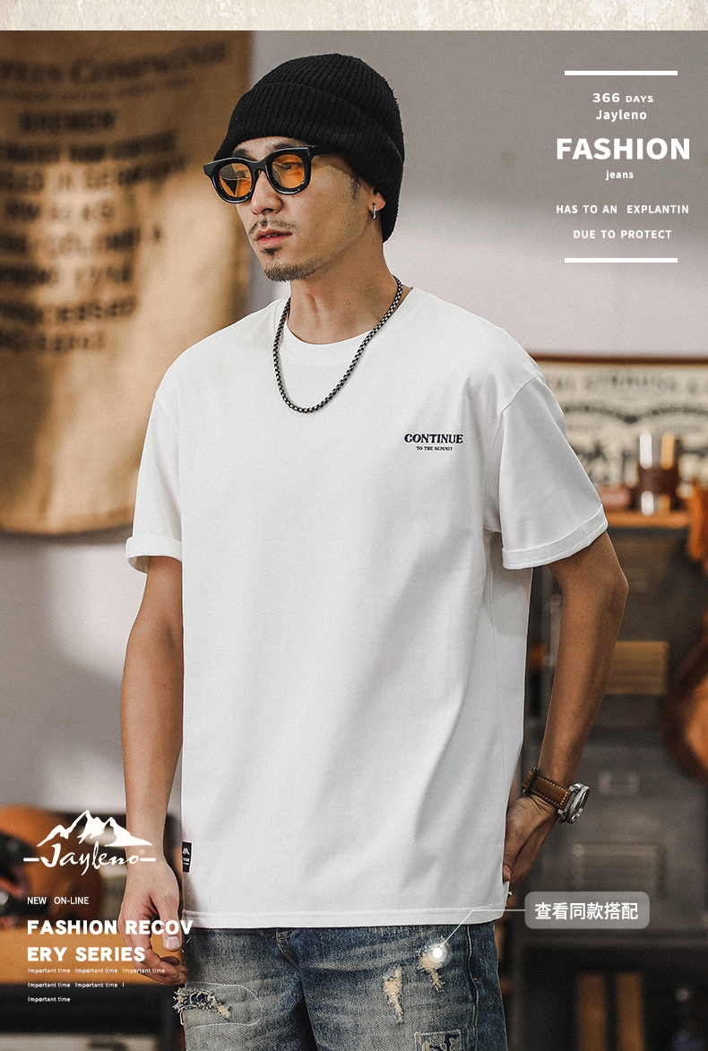 미국 티셔츠 남성 여름 반팔 남성 2024 새로운 패션 브랜드 인쇄 260g 헤비 코튼 루즈 탑 남성스토어 가기