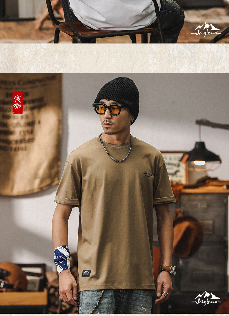 미국 티셔츠 남성 여름 반팔 남성 2024 새로운 패션 브랜드 인쇄 260g 헤비 코튼 루즈 탑 남성