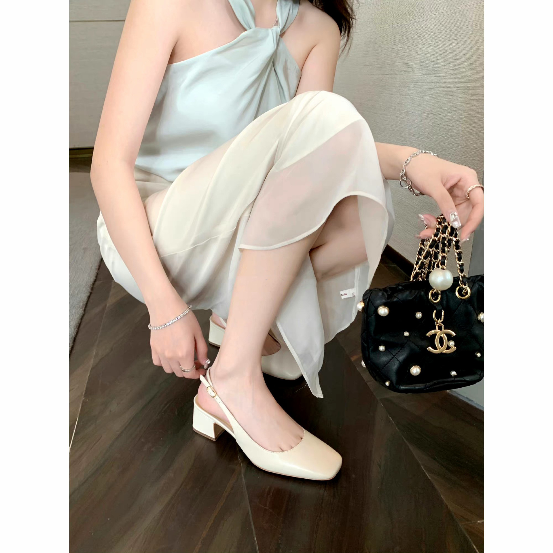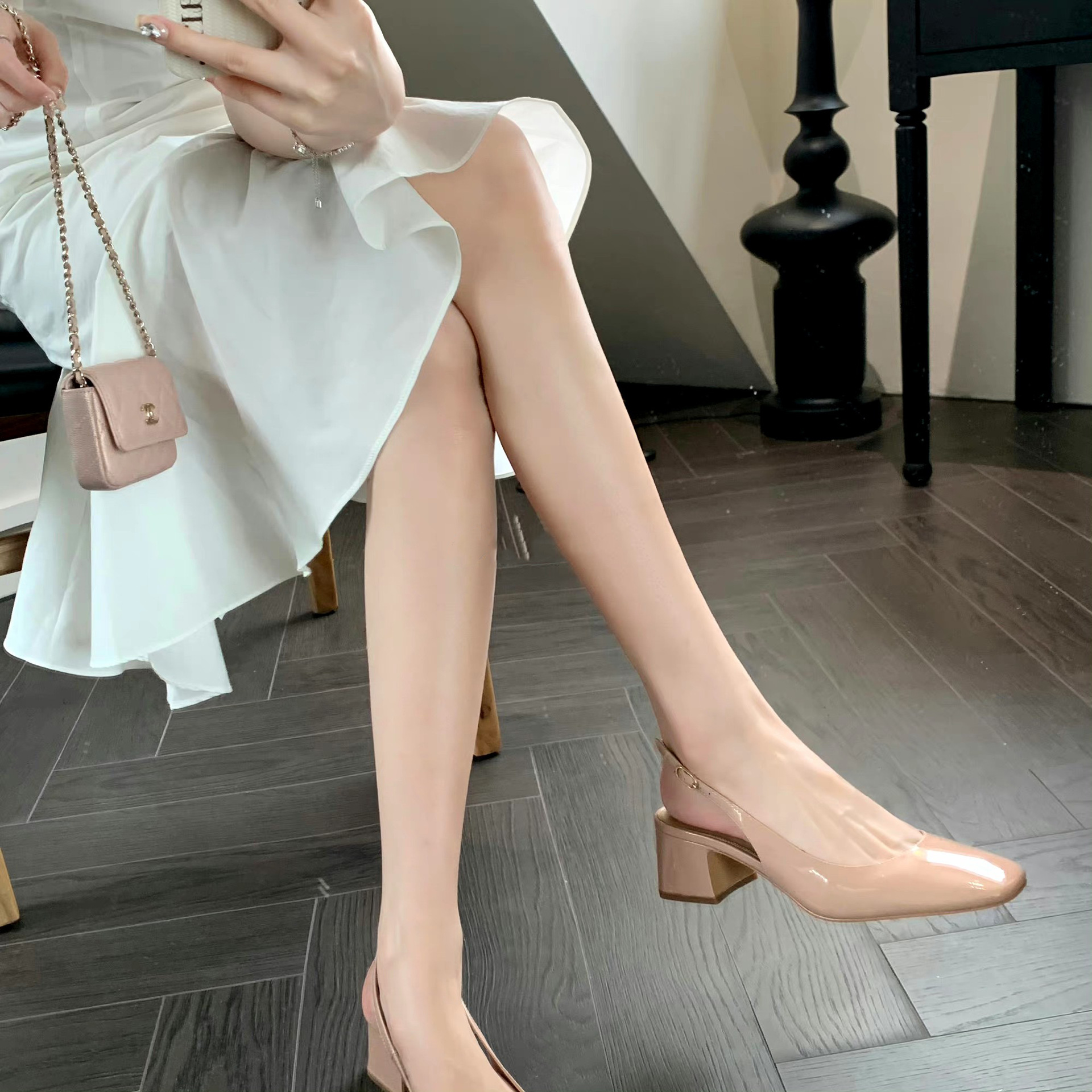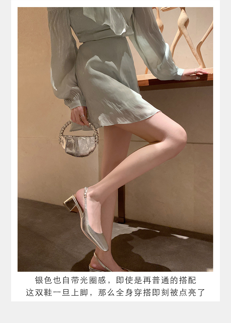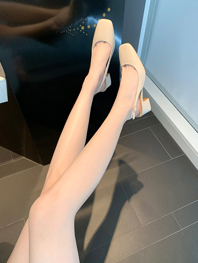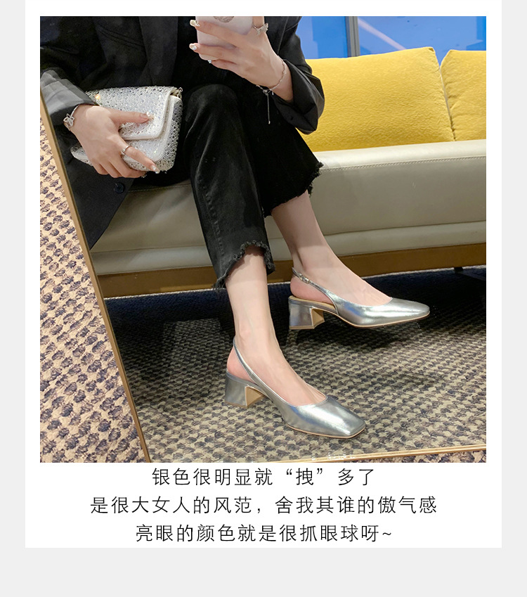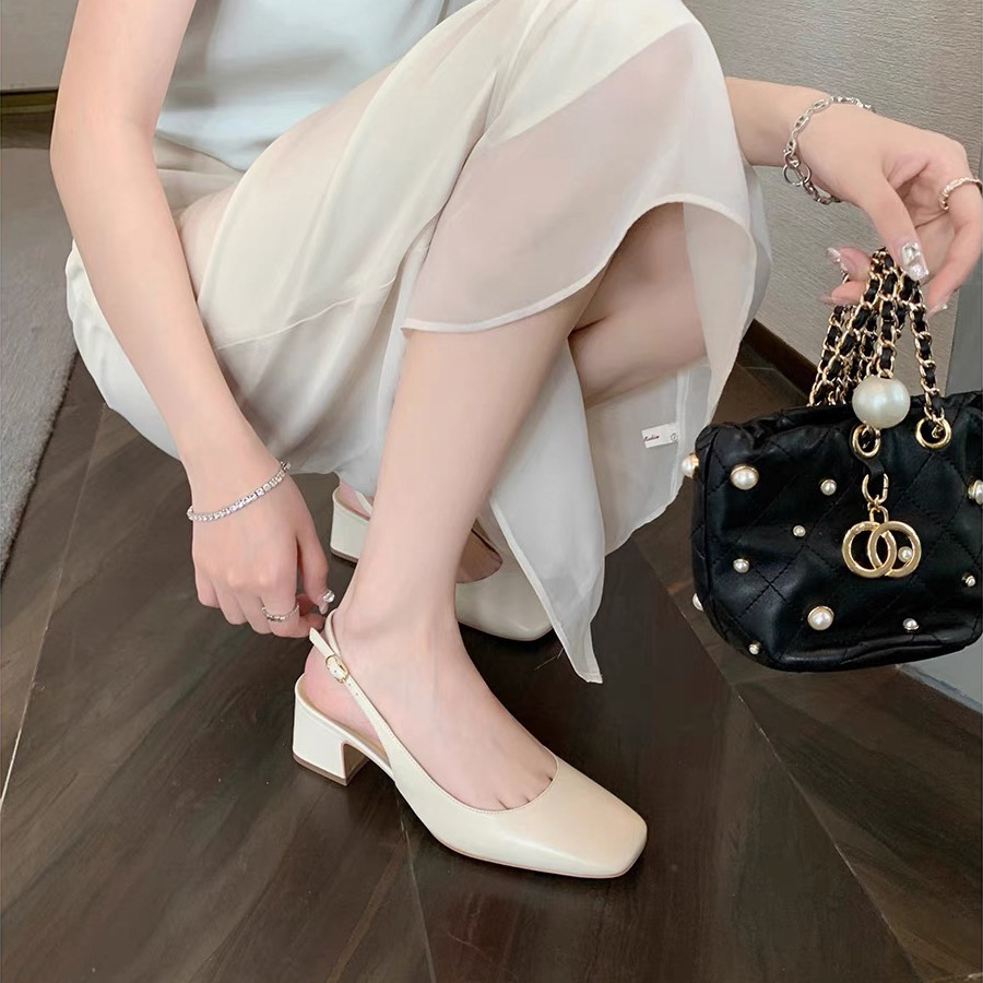 정품 가죽 양가죽 버전 여름 새로운 스타일의 우아한 싱글 레이어 신발 스퀘어 헤드 리어 빈 얕은 두꺼운 힐 여성용 정품 가죽 하이힐 샌들스토어 가기