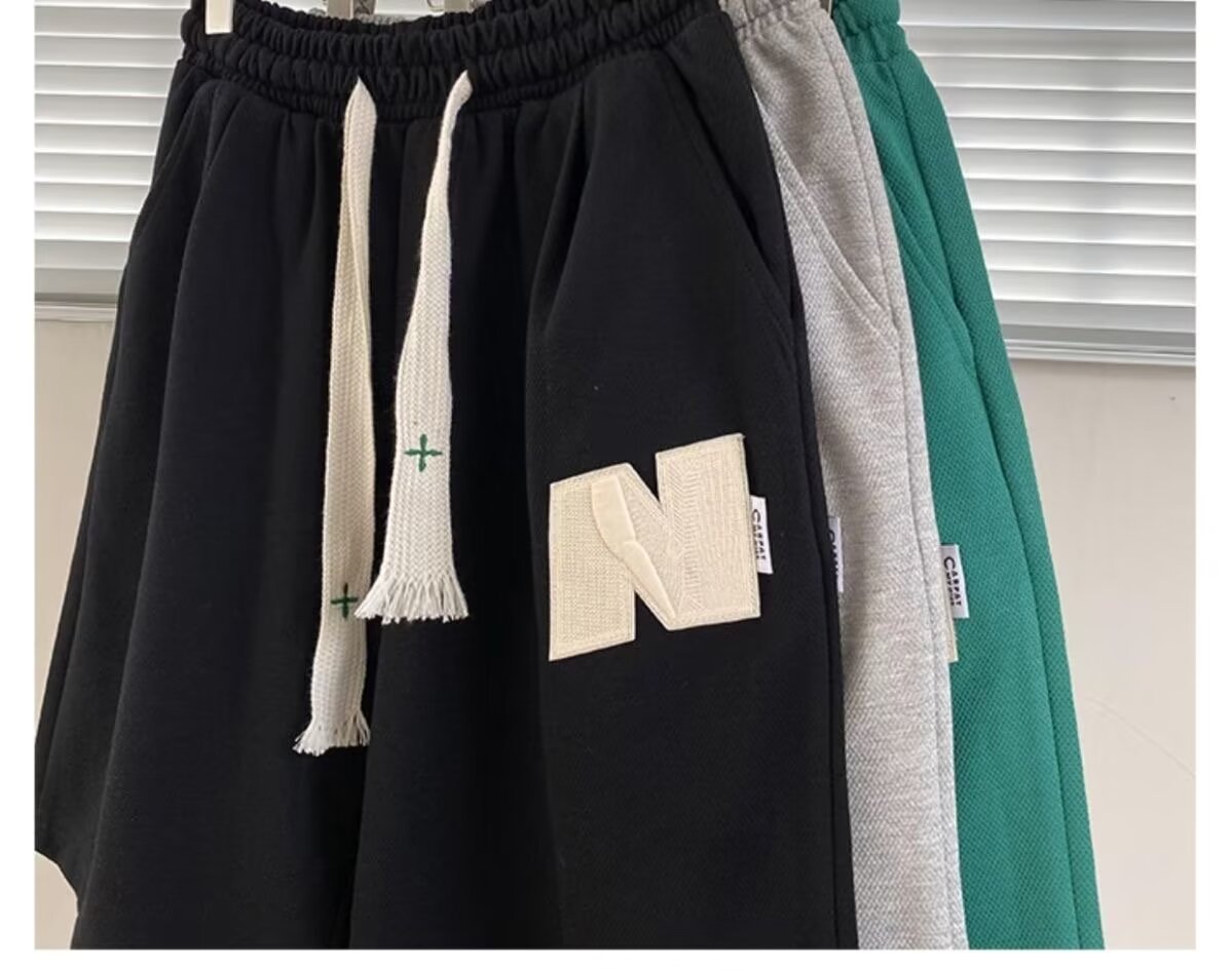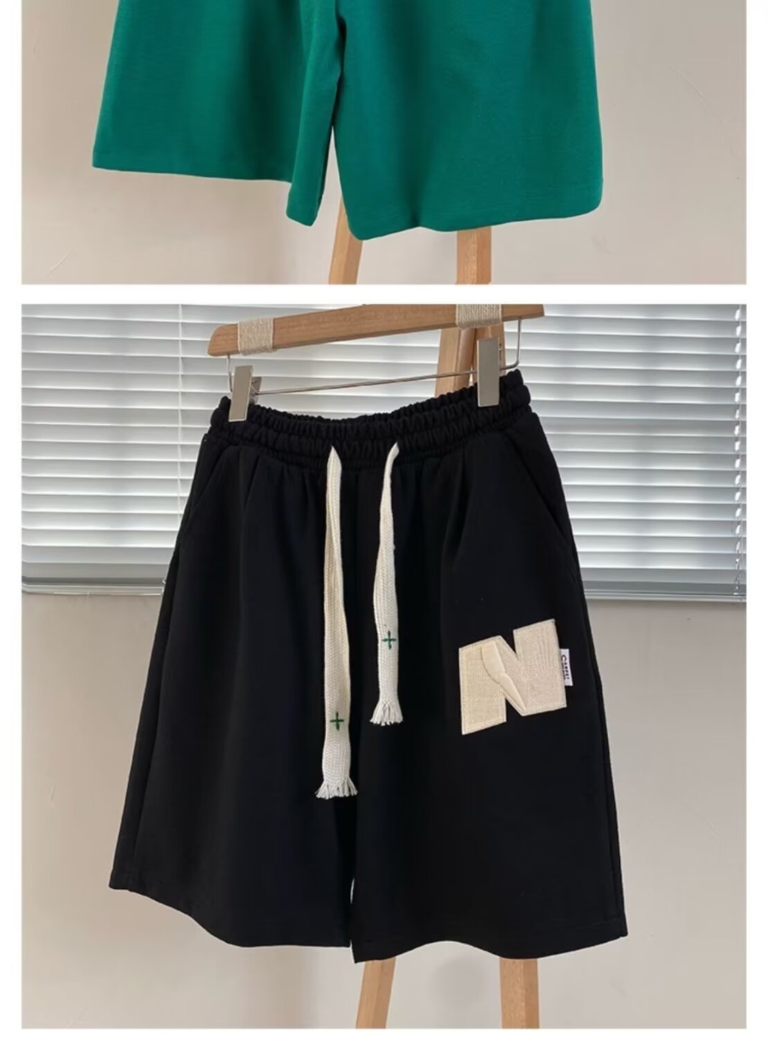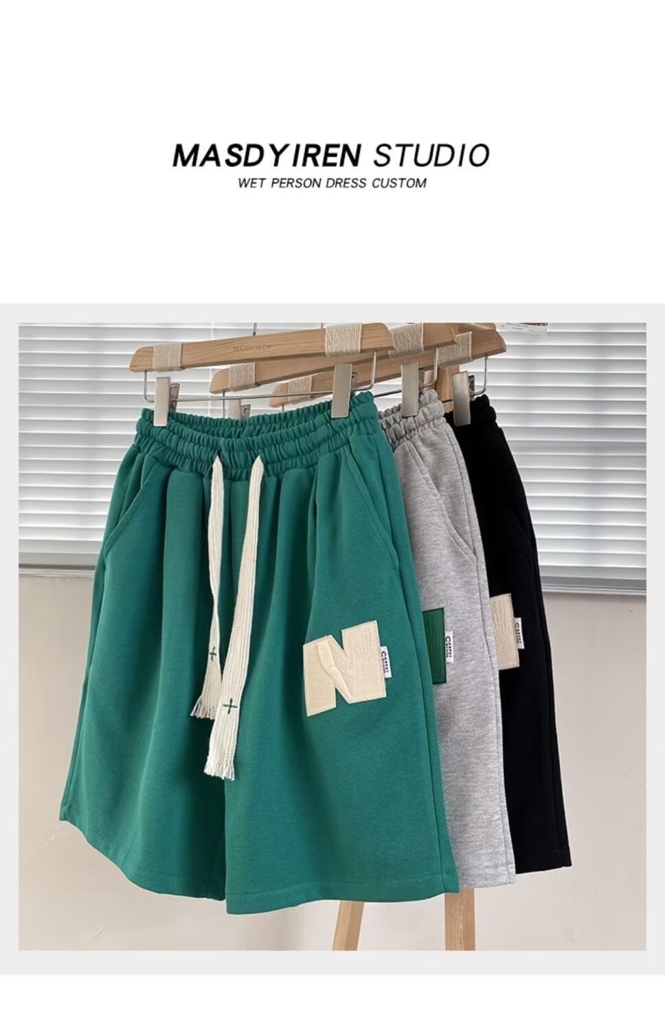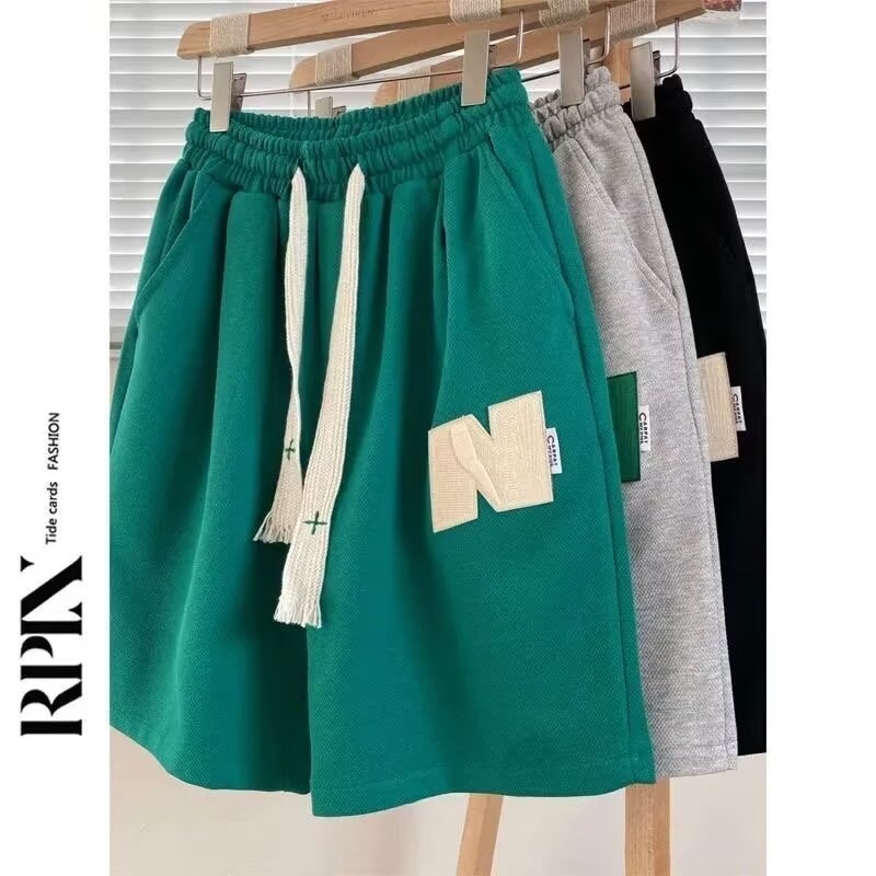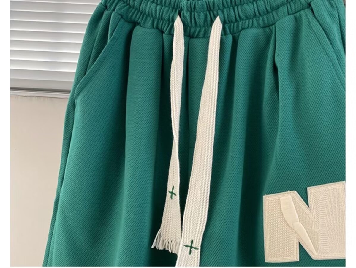 아메리칸 스타일 자수 캐주얼 반바지 남성 여름 트렌디 브랜드 인 와플 바지 하이 스트리트 루즈 스포츠 바지스토어 가기