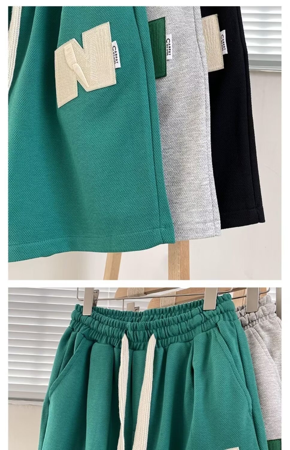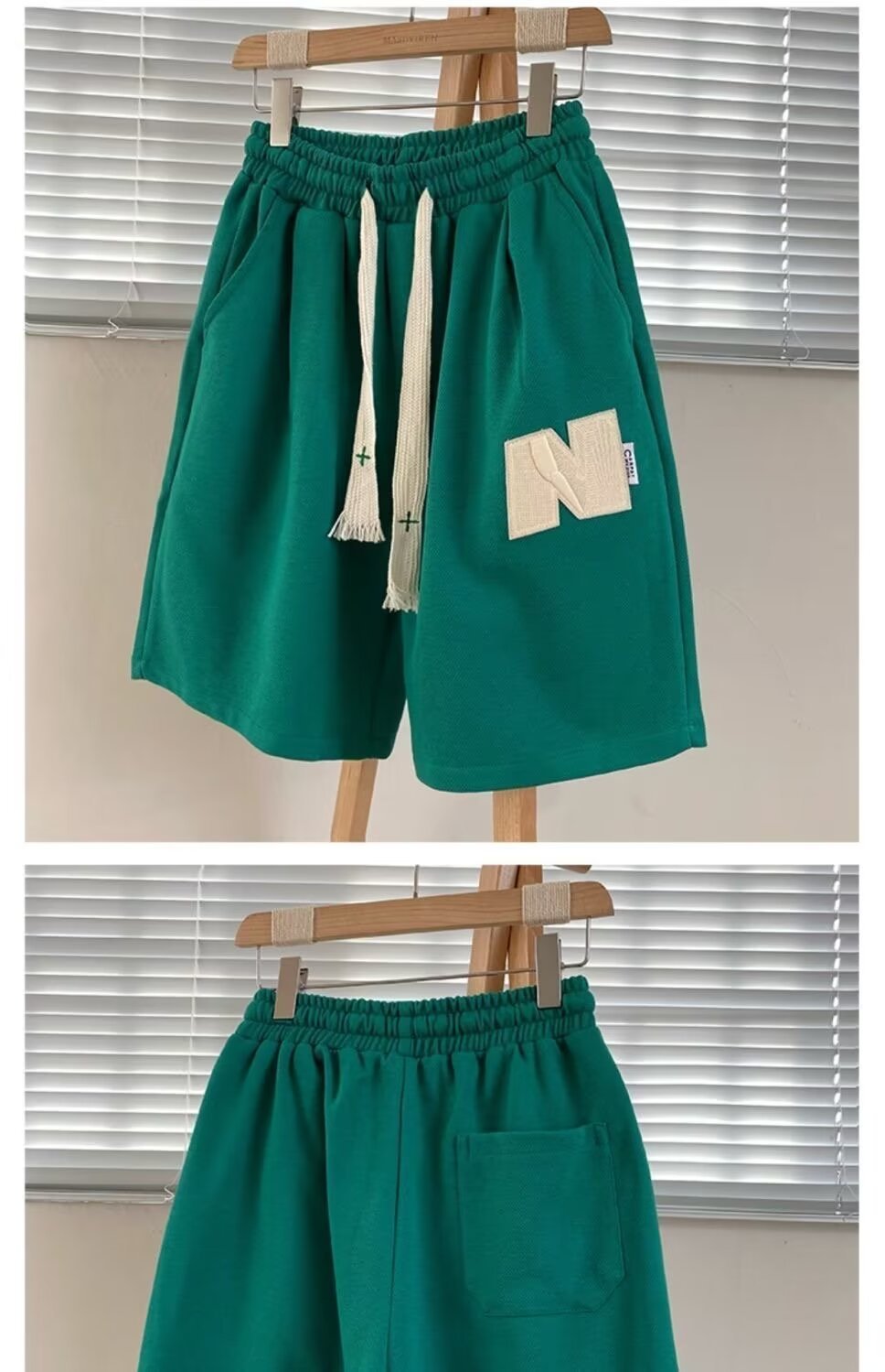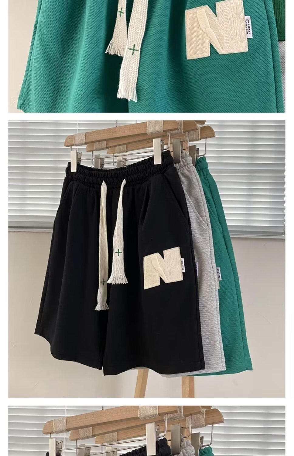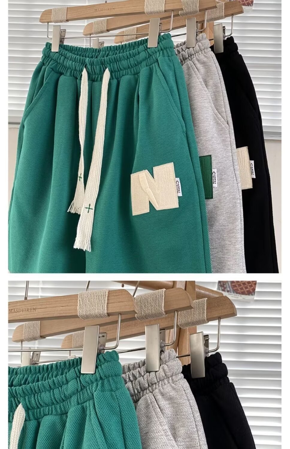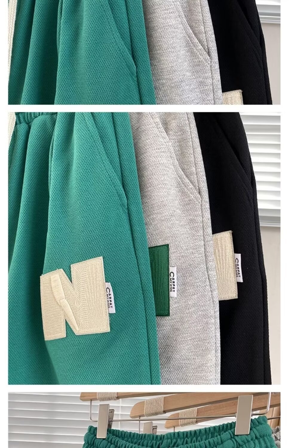 아메리칸 스타일 자수 캐주얼 반바지 남성 여름 트렌디 브랜드 인 와플 바지 하이 스트리트 루즈 스포츠 바지스토어 가기