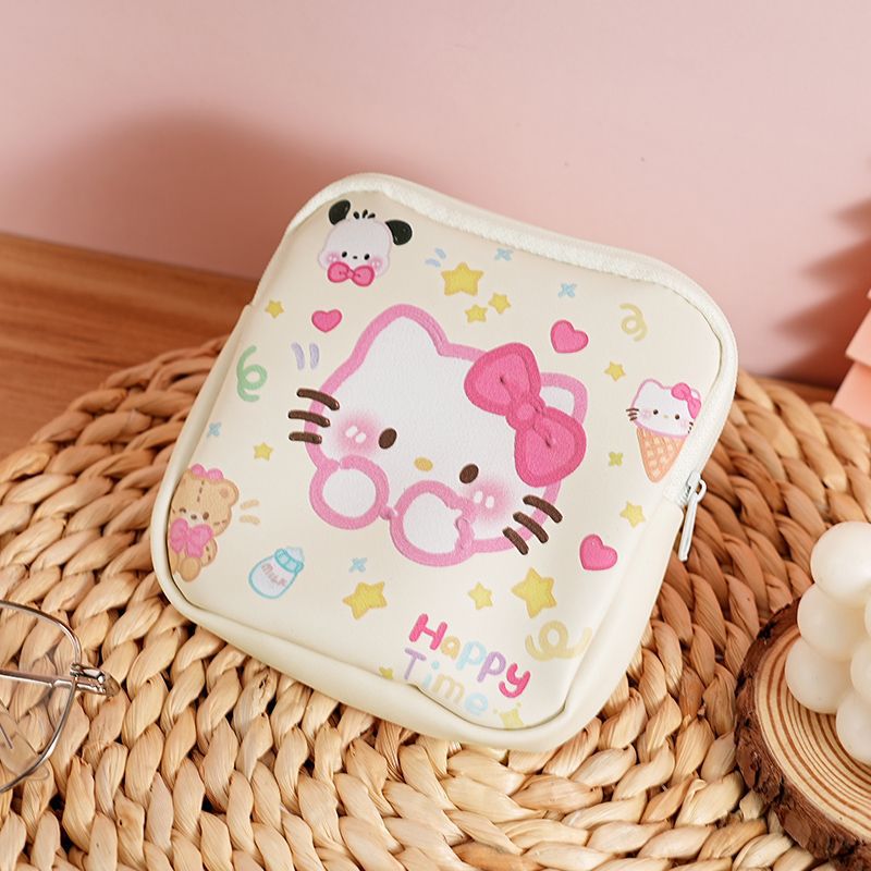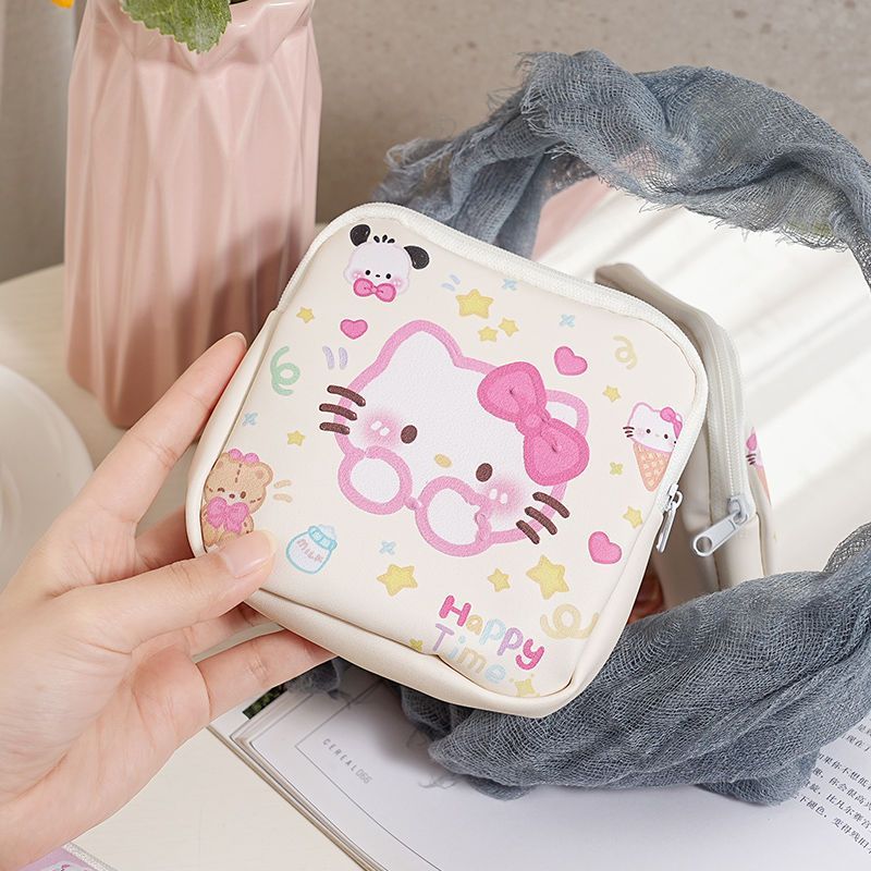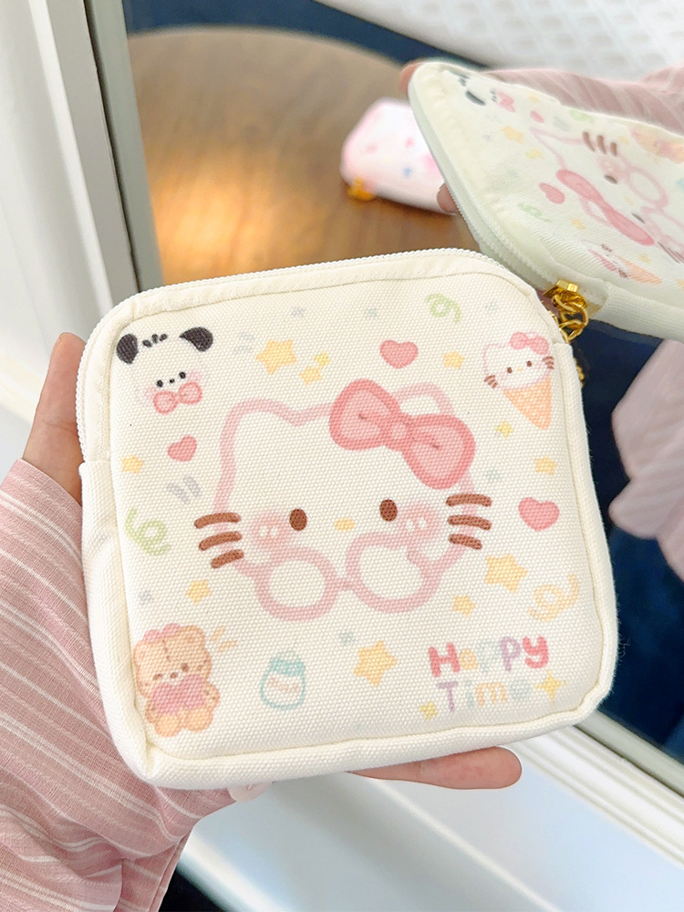 2024 여름 새로운 귀여운 루비 만화 키티 탐폰 이모 수건 보관 가방 휴대용 캔버스 작은 가방