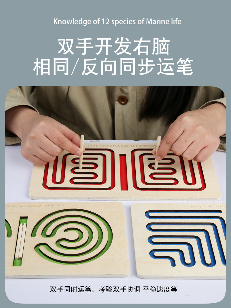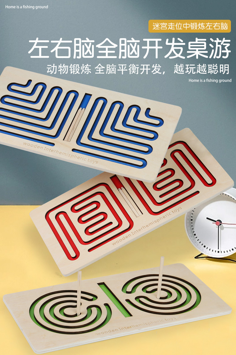 나무 조기교육 재미있는 퍼즐 미로, 미세한 움직임과 색상 인식을 위한 나무 교육용 장난감