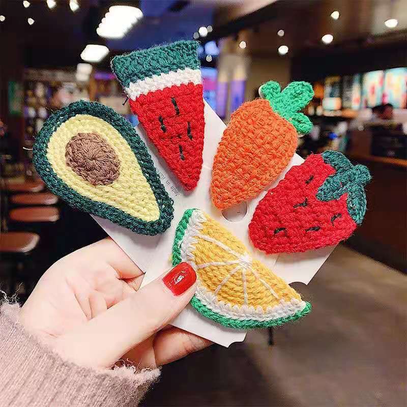 어린이 헤어핀 수제 니트 뱅 클립 귀여운 헤어핀 달콤한 과일 사이드 클립 작은 동물 헤어 액세서리 클립