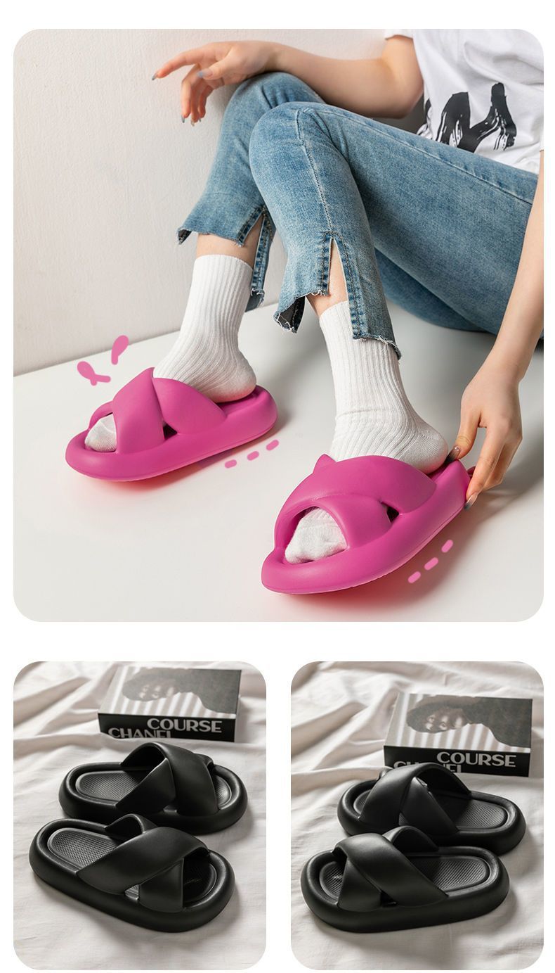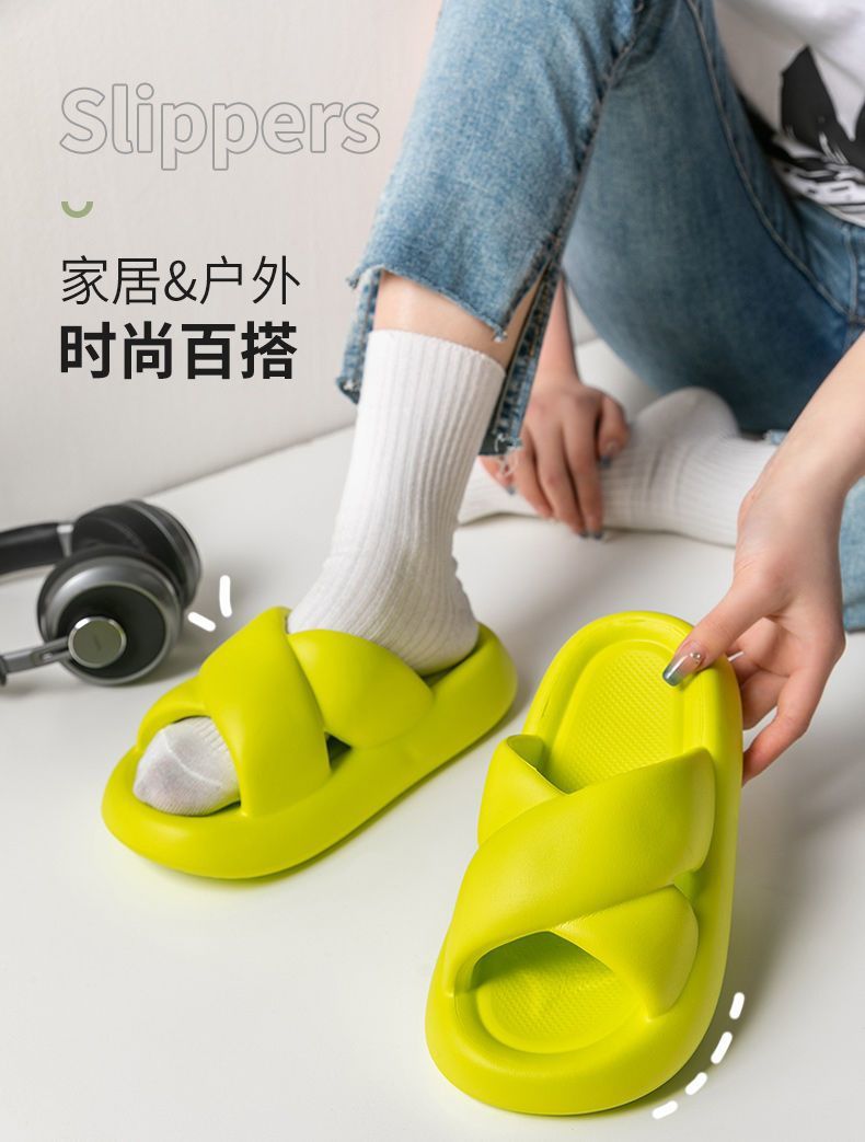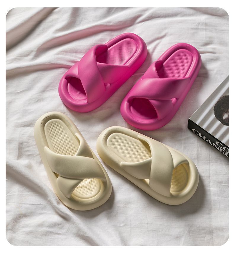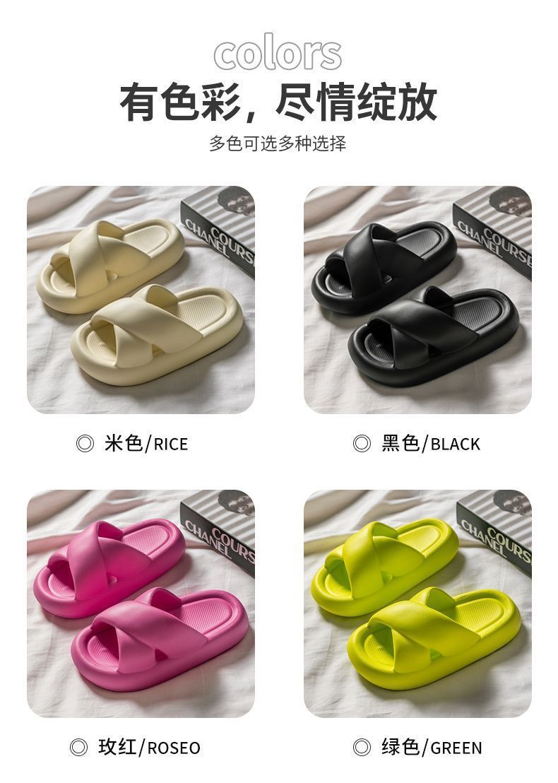 여성용 크로스 슬리퍼 여름 2025 새로운 겉옷 실내 홈 욕실 미끄럼 방지 부드러운 밑창 샌들스토어 가기