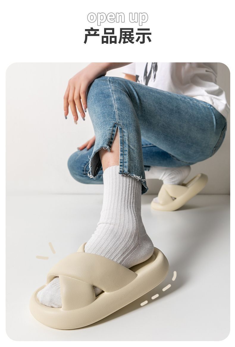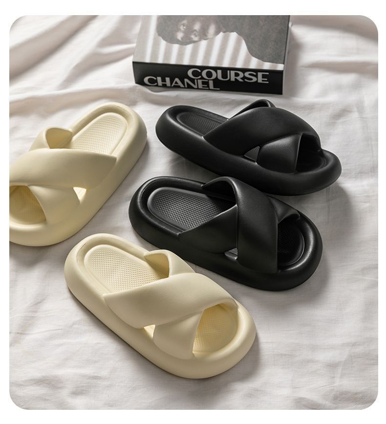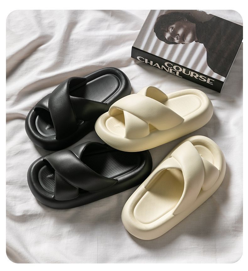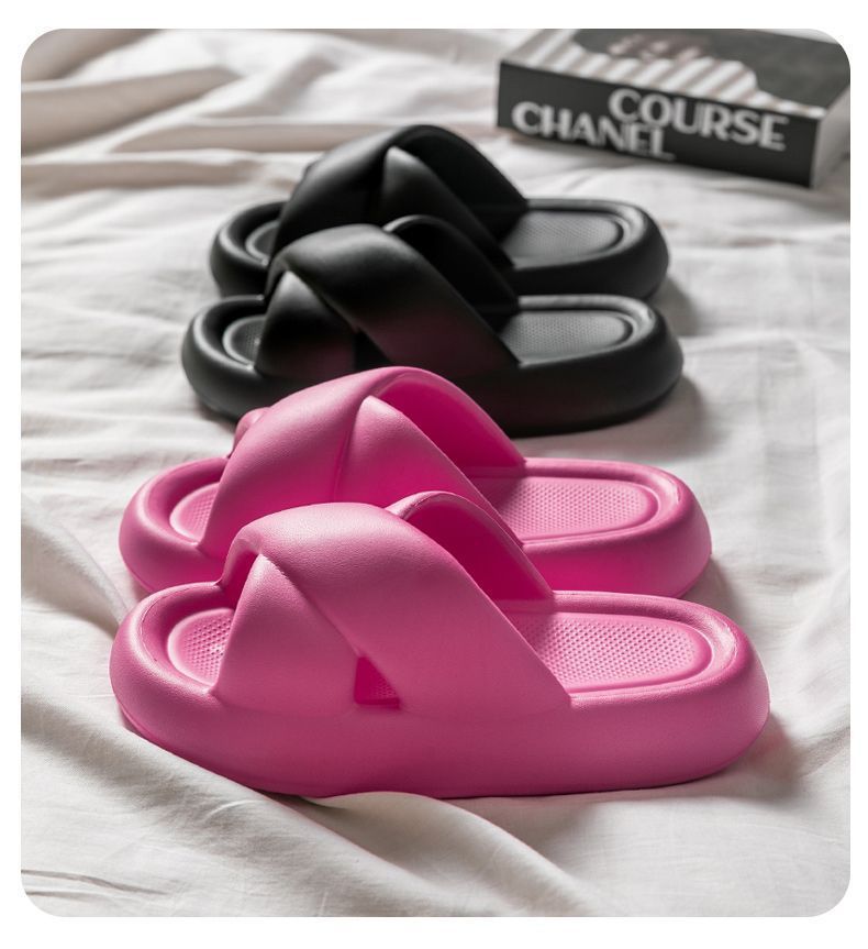 여성용 크로스 슬리퍼 여름 2025 새로운 겉옷 실내 홈 욕실 미끄럼 방지 부드러운 밑창 샌들스토어 가기