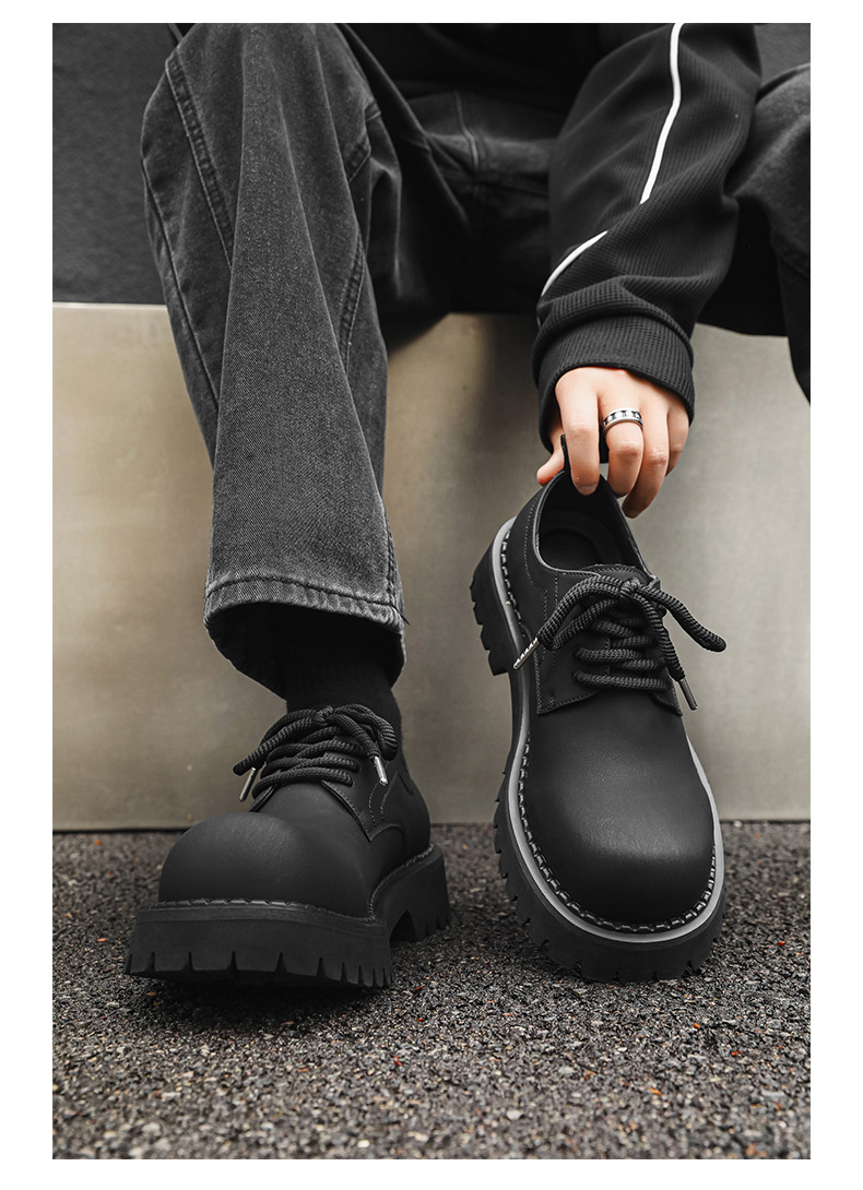 더비 신발 남자의 여름 두꺼운 밑창 높이 증가 툴링 신발 블랙 캐주얼 레트로 라운드 발가락 가죽 신발 큰 발가락 유행 가죽 신발스토어 가기