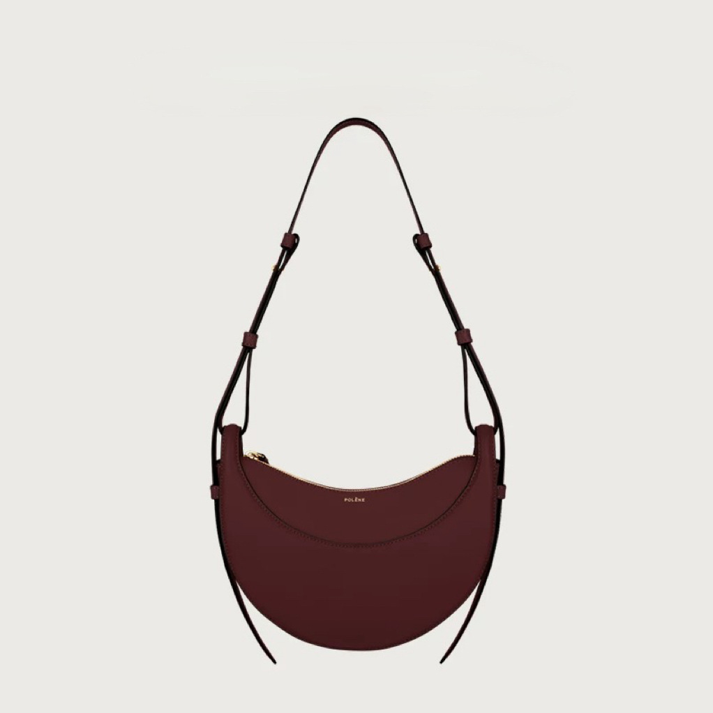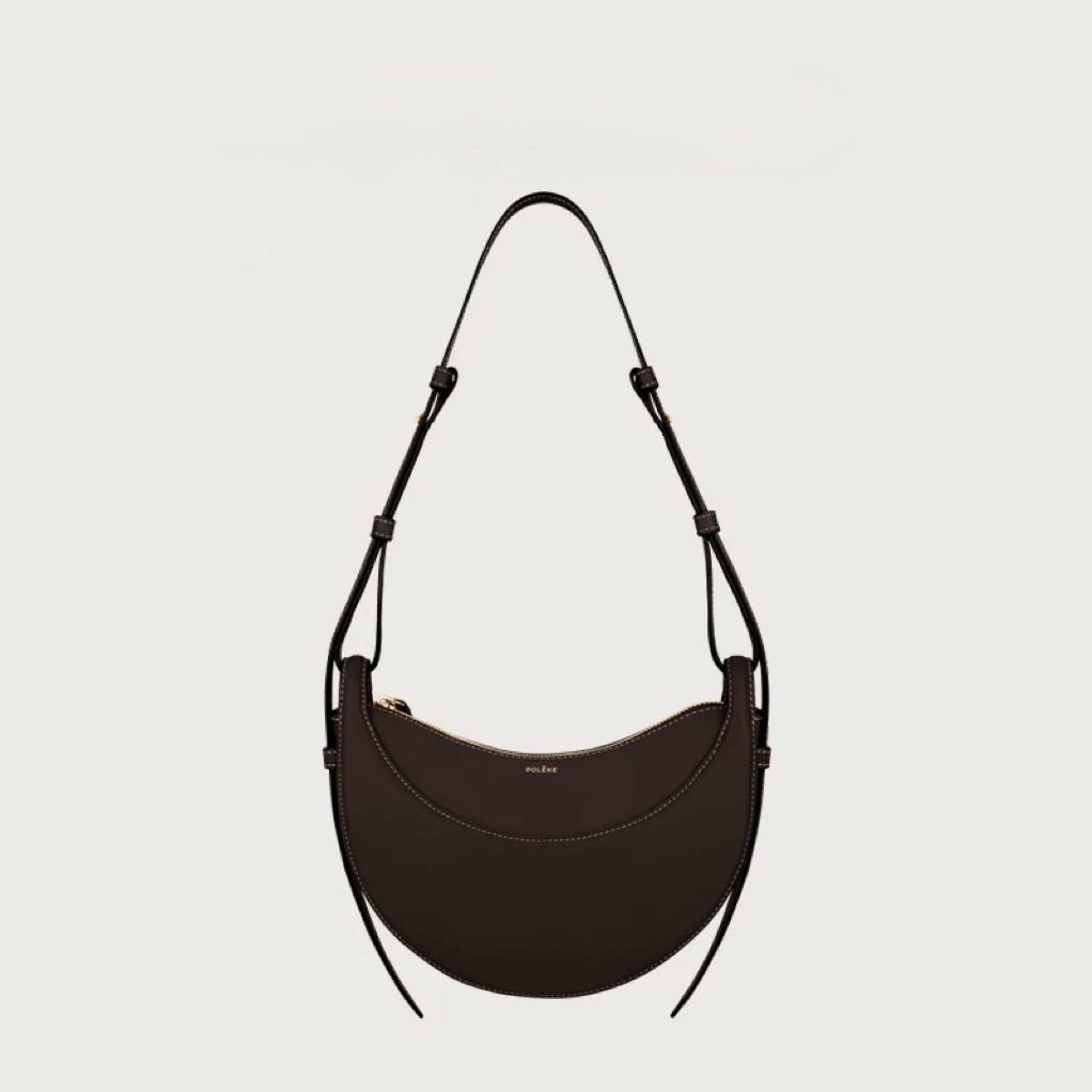 프랑스 POLENE 틈새 디자인 어깨 크로스 바디 백 Cowhide 텍스처 크레센트 백 정품 가죽 여성용 가방 언더암 안장 가방스토어 가기