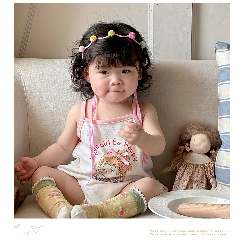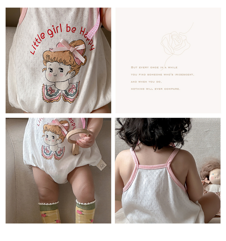 여름 한국 스타일 ins 스타일 만화 아기 얇은 크롤링 옷 귀여운 가운 0-2 세 아기 소녀 서스펜더 옷스토어 가기