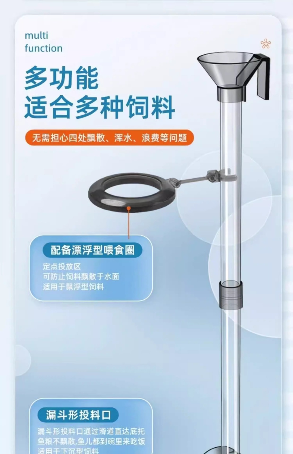 물고기 음식 물고기 탱크 피더 아크릴 작은 고정 점 공급 튜브 침몰 안티 드리프트 피더 지능형 먹이 링
