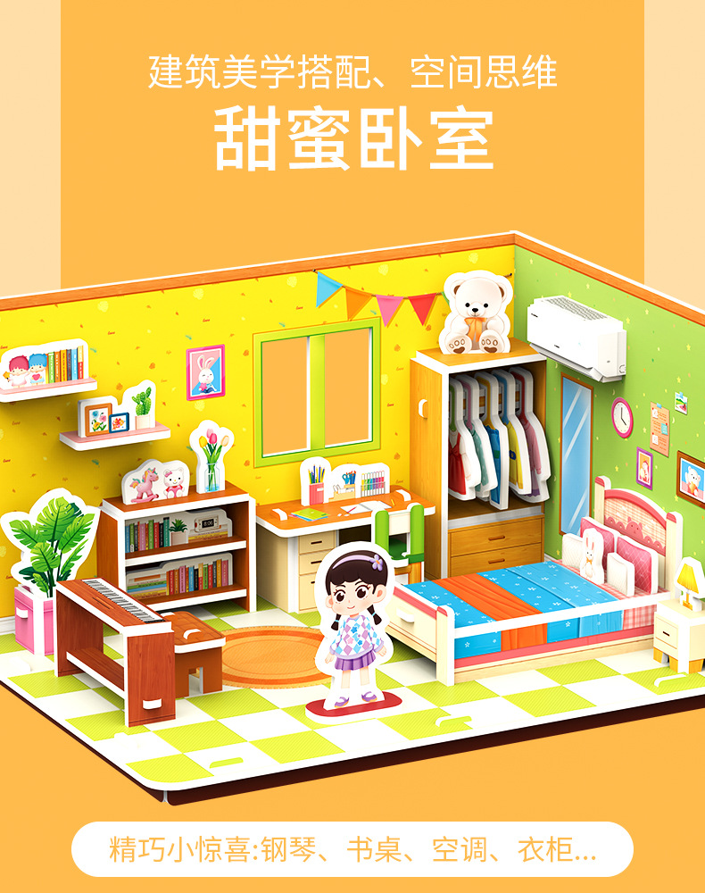 어린이 3D 입체 퍼즐 diy ~ 손으로 조립 된 집 소녀의 교육 조기 교육 부모 자식 대화 형 모자이크 장난감스토어 가기