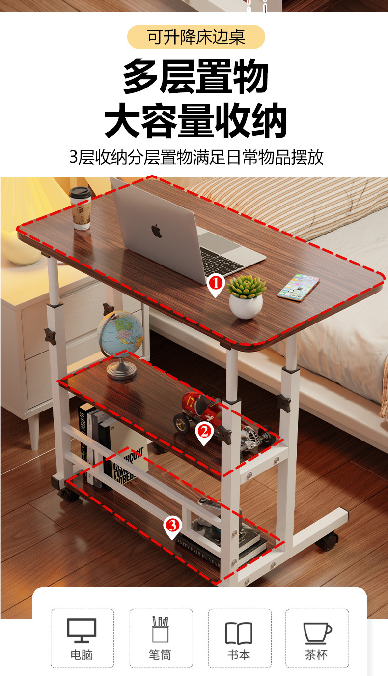 침대 옆 테이블 움직일 수 있는 기숙사 작은 테이블 간단한 컴퓨터 책상 침실 책상 가정 학생 게으른 리프팅 테이블