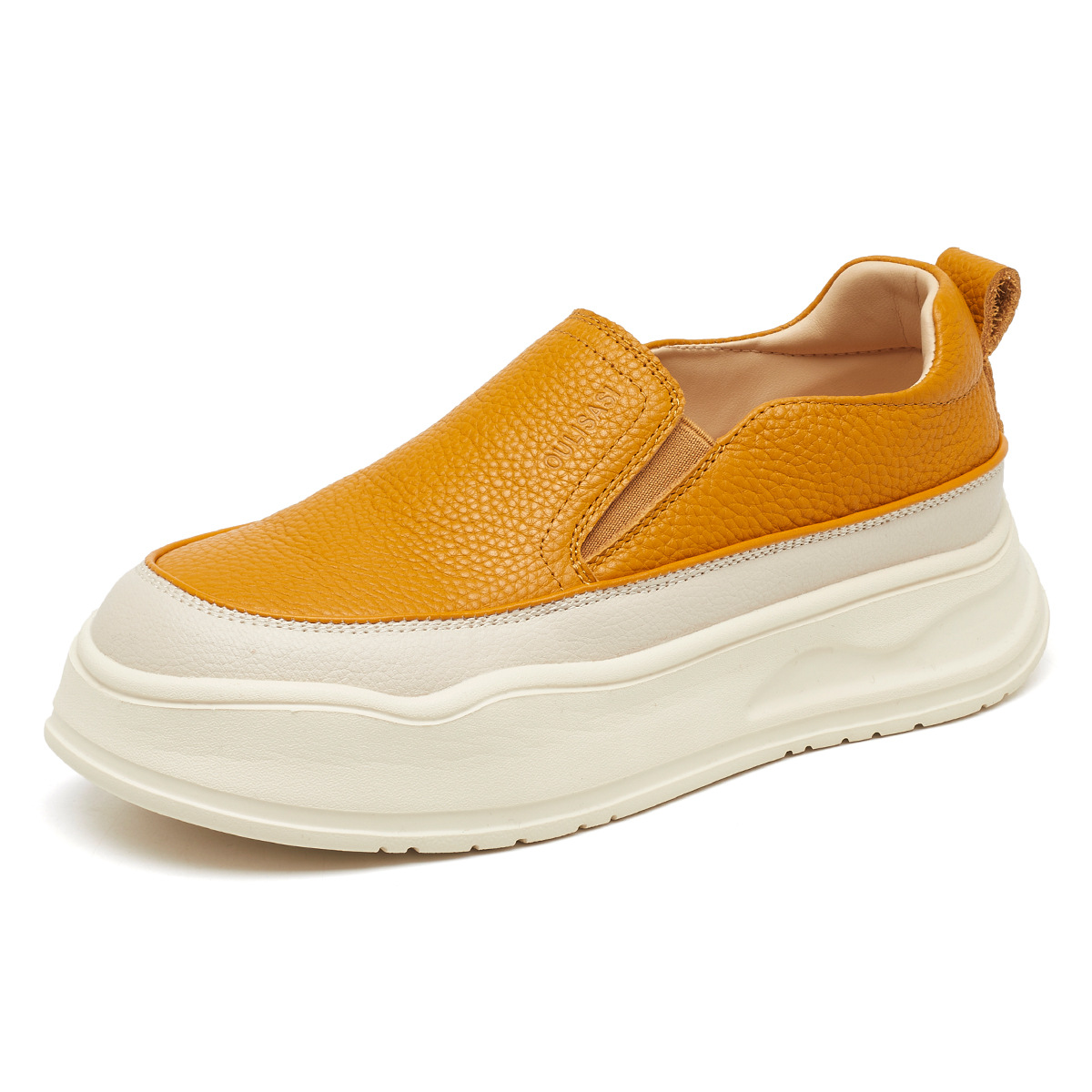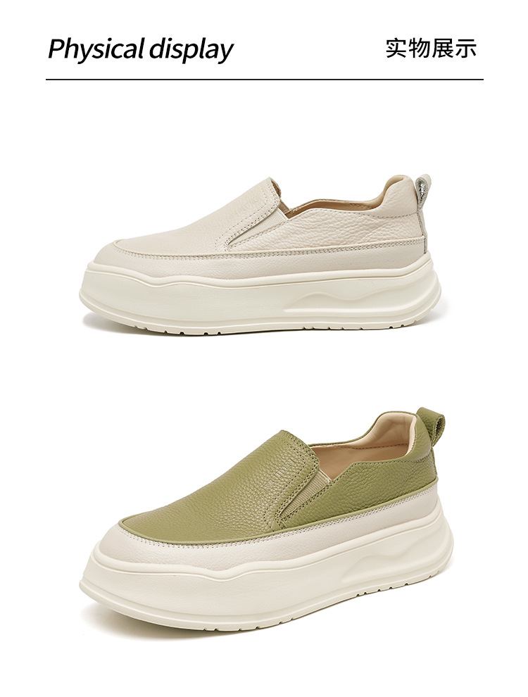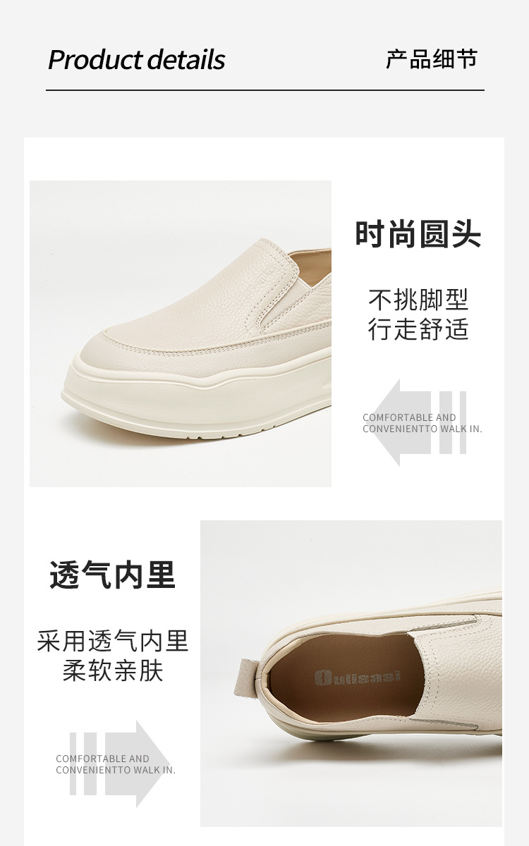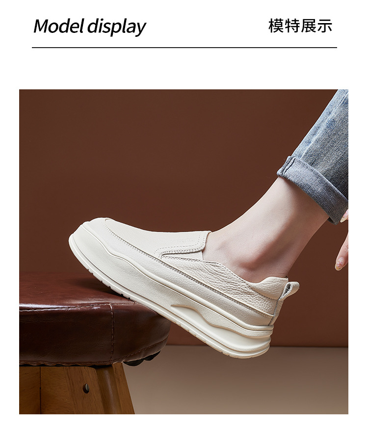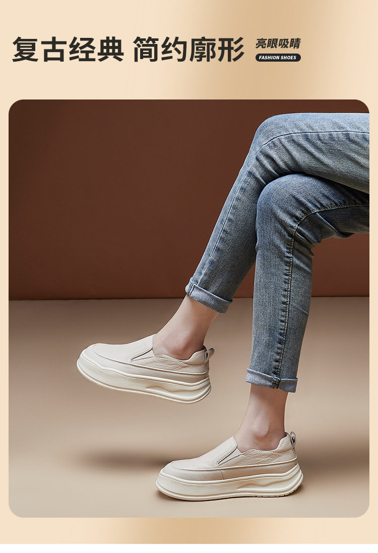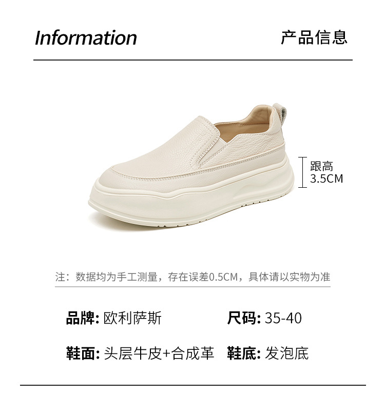 정품 가죽 화이트 슈즈 여성 2024 봄 탑 레이어 Cowhide 슬립 온 슈즈 여성 레트로 한국식 캐주얼 플랫폼 슈즈스토어 가기