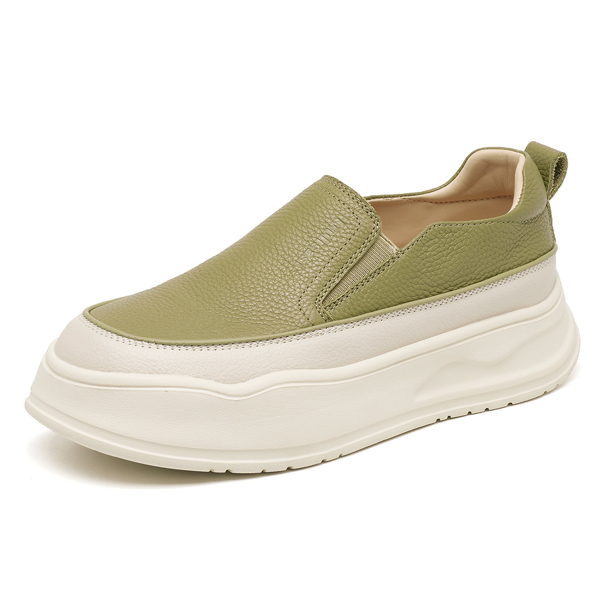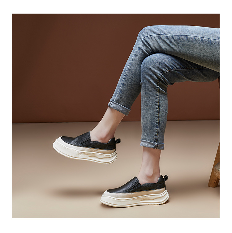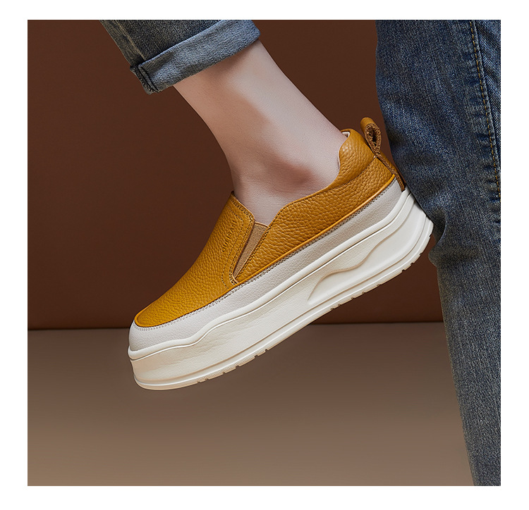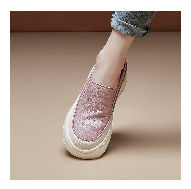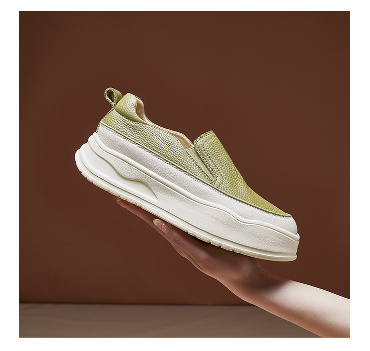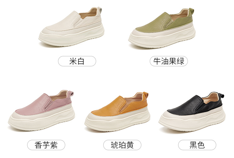 정품 가죽 화이트 슈즈 여성 2024 봄 탑 레이어 Cowhide 슬립 온 슈즈 여성 레트로 한국식 캐주얼 플랫폼 슈즈