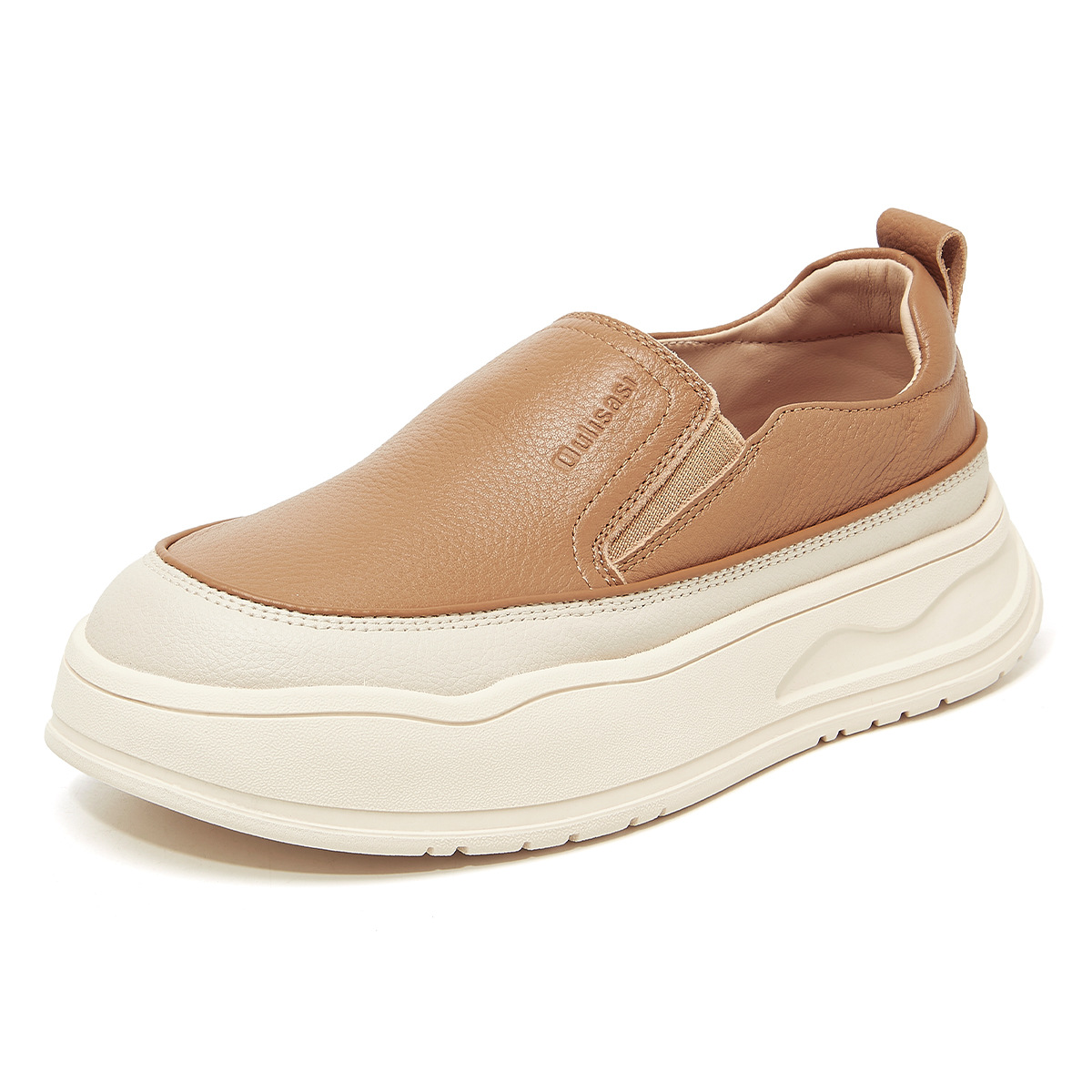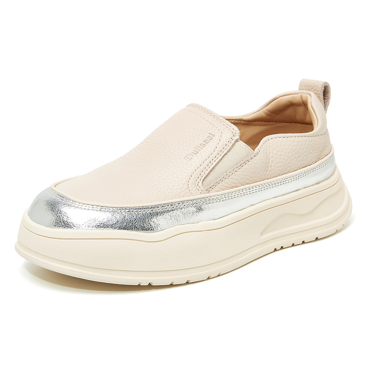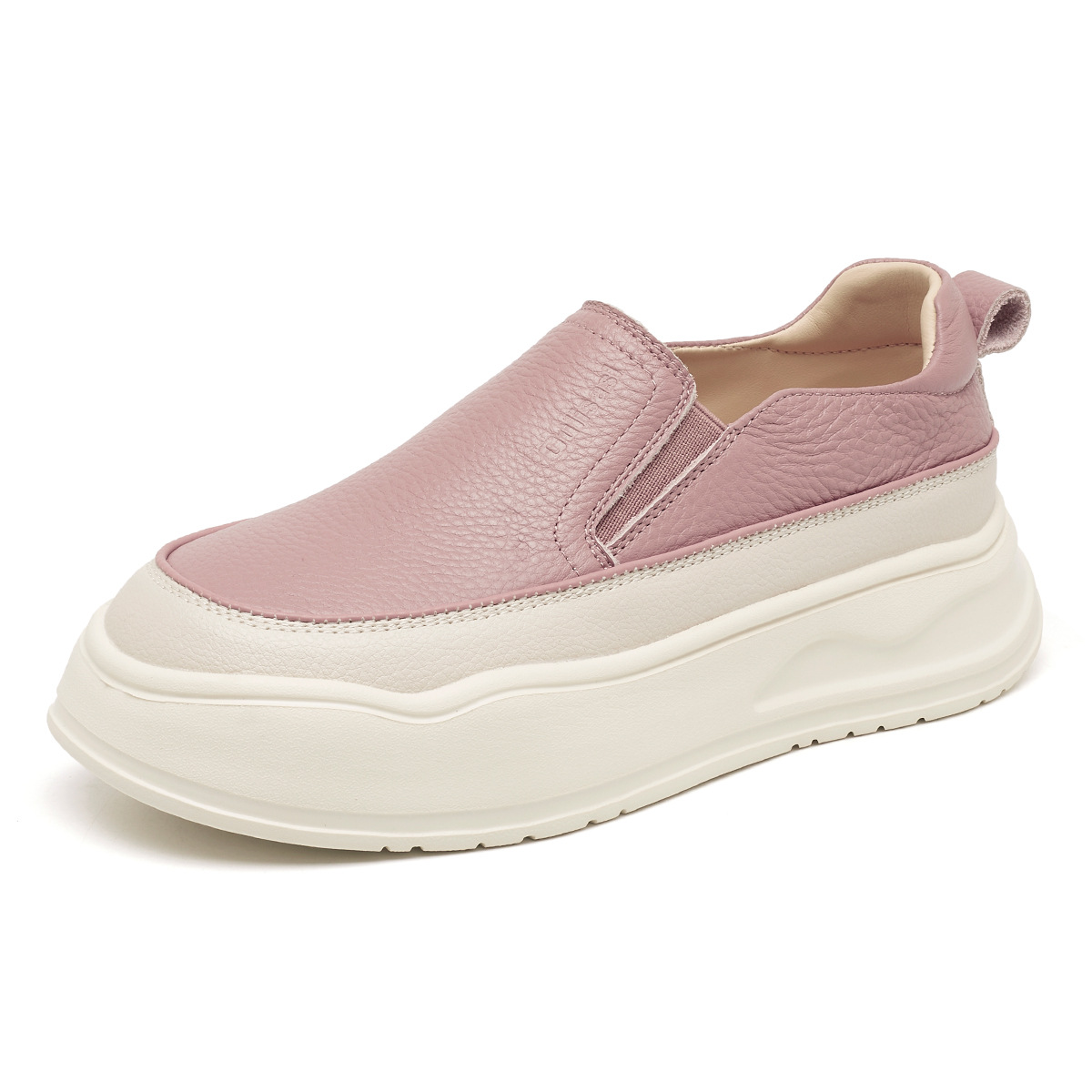 정품 가죽 화이트 슈즈 여성 2024 봄 탑 레이어 Cowhide 슬립 온 슈즈 여성 레트로 한국식 캐주얼 플랫폼 슈즈
