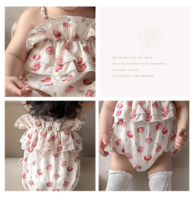 2024 여름 소녀 얇은 프랑스 아기 소녀 어린이 의류 공주 레이스 민소매 외출 아기 슬링스토어 가기