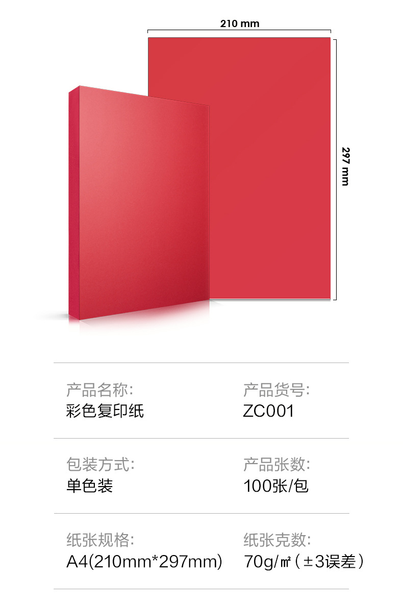 • ZC001 라이트 레드 [70g] 100 장/가방