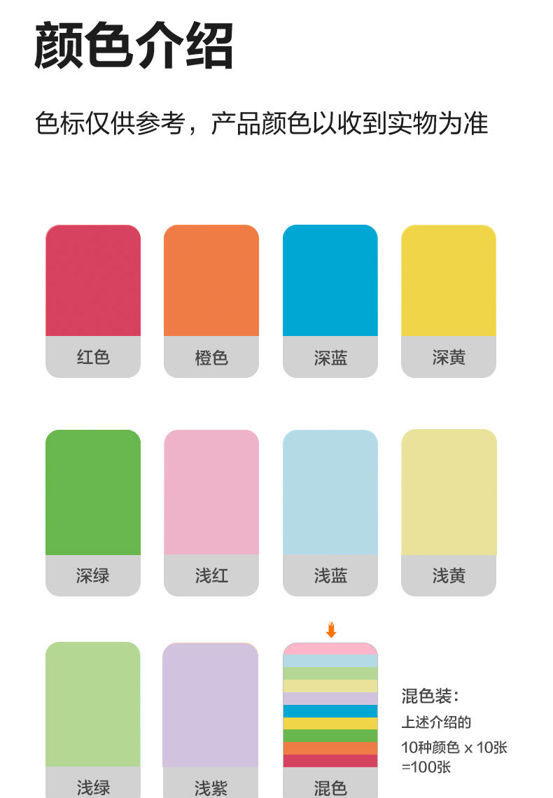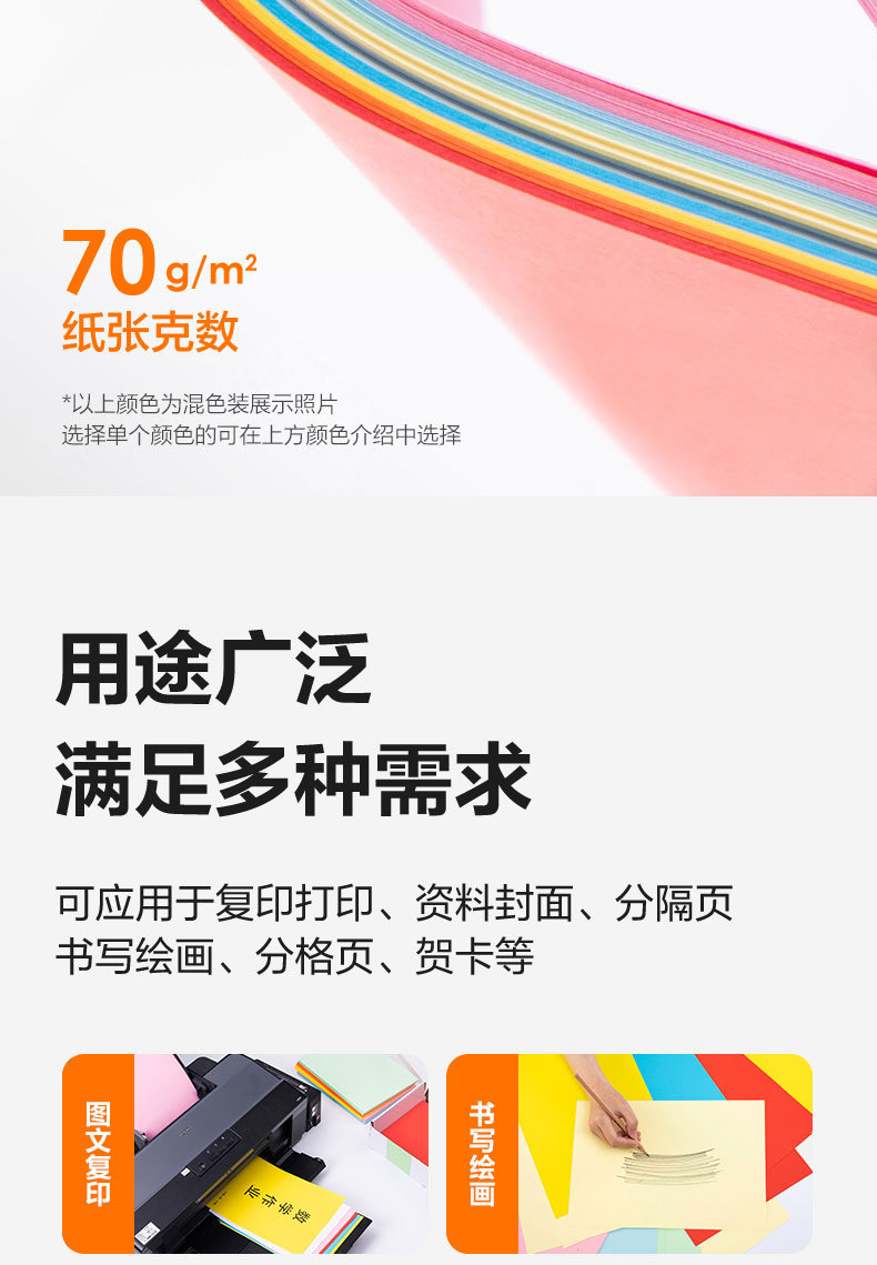 델리 70g 컬러 복사 용지 100 a4 인쇄 용지 어린이 학생 손 종이 접기 사무실 A4 용지 도매