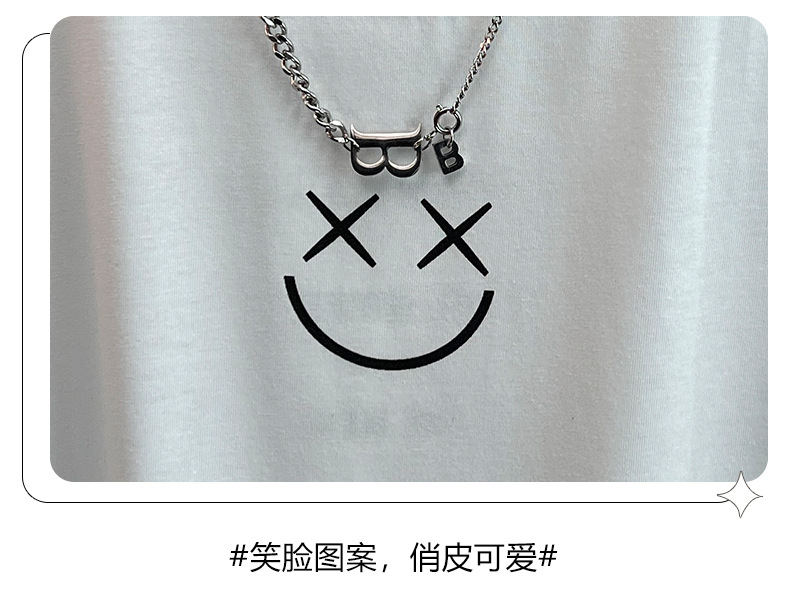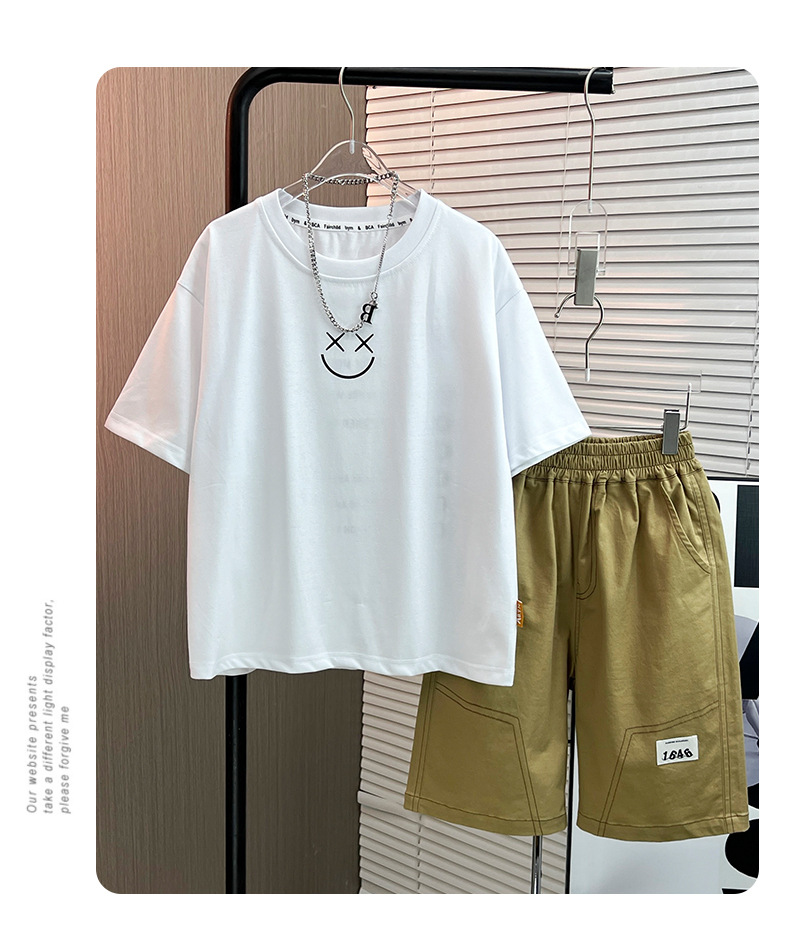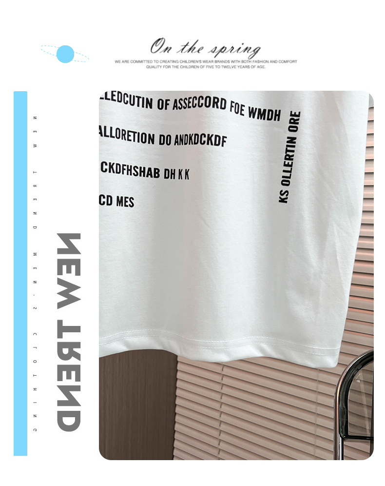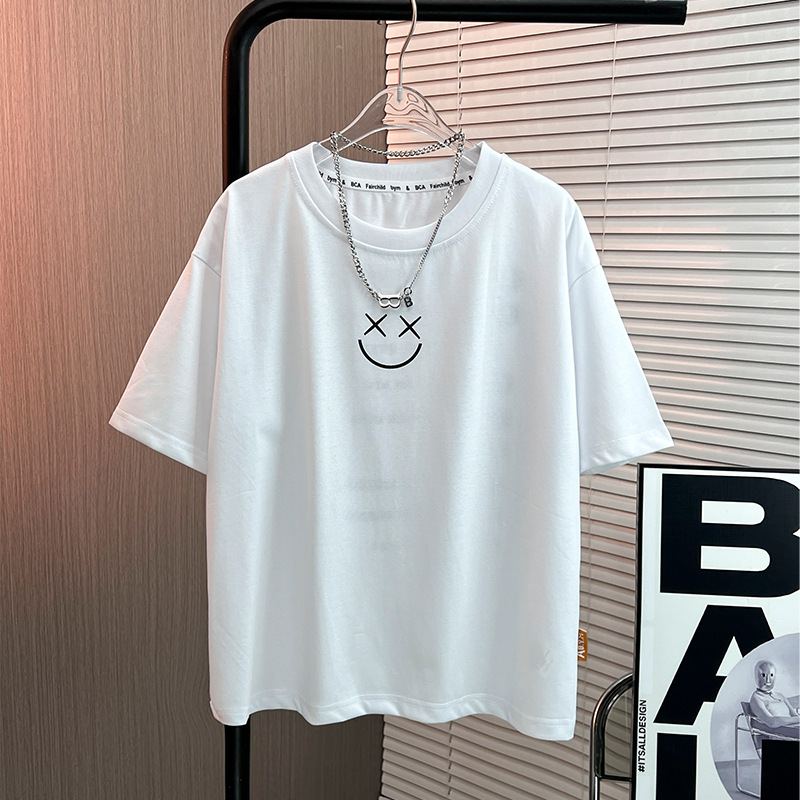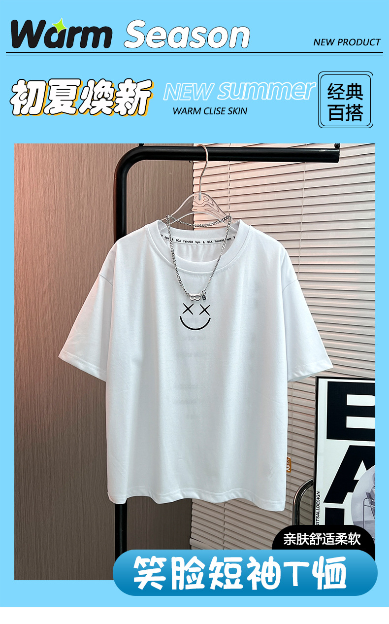 소년 여름 코튼 반팔 2024 새로운 스마일리 화이트 얇은 티셔츠 어린이 중 큰 어린이 캐주얼 루즈 탑스토어 가기