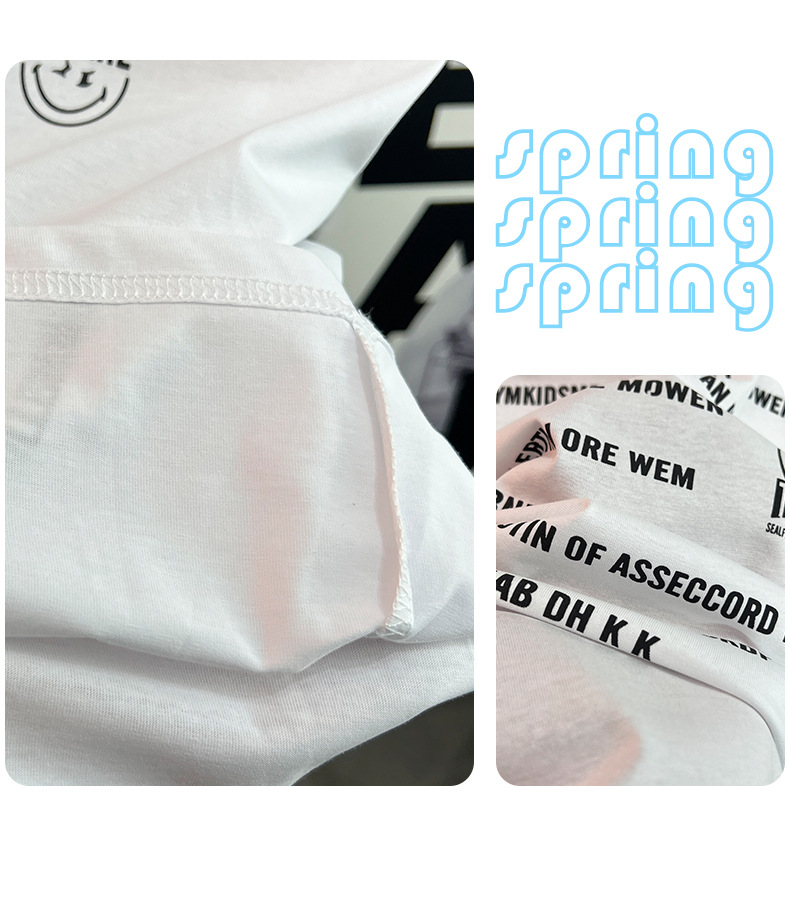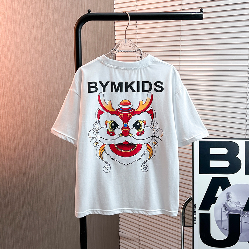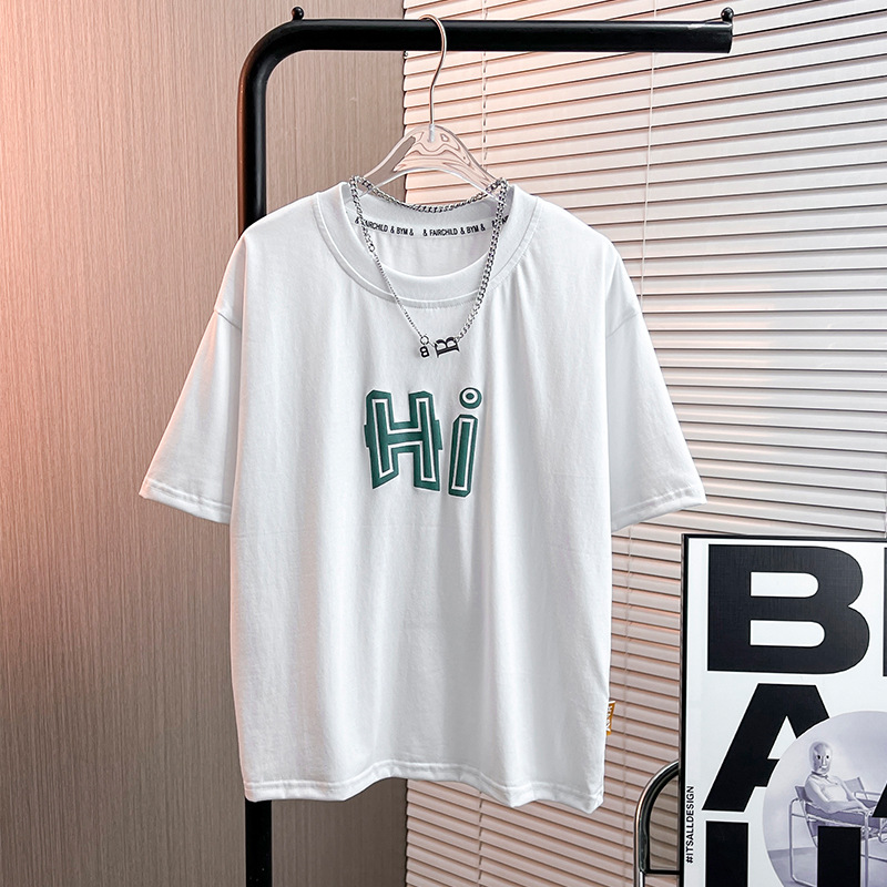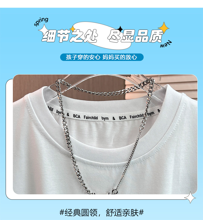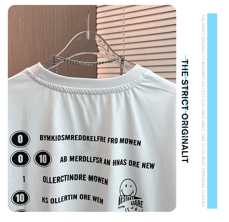 소년 여름 코튼 반팔 2024 새로운 스마일리 화이트 얇은 티셔츠 어린이 중 큰 어린이 캐주얼 루즈 탑스토어 가기