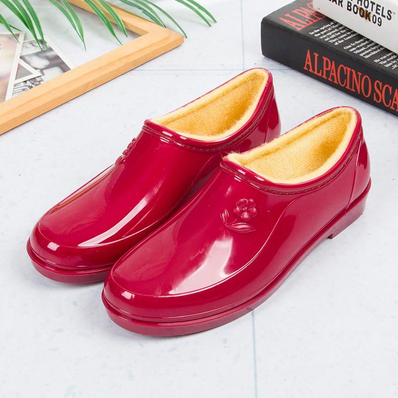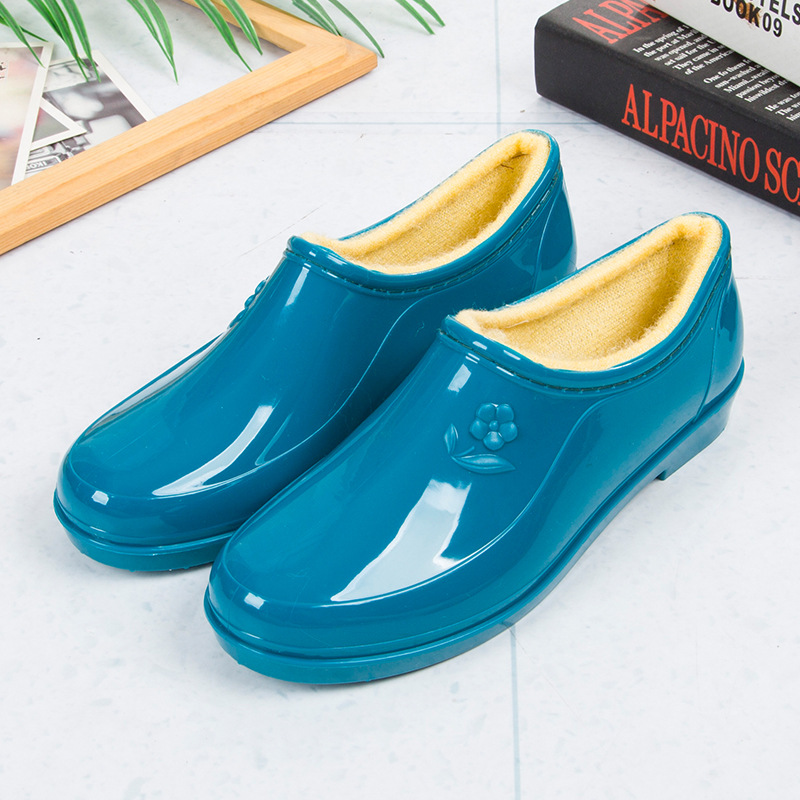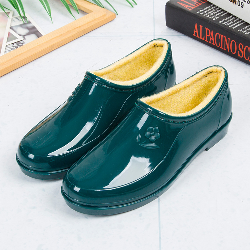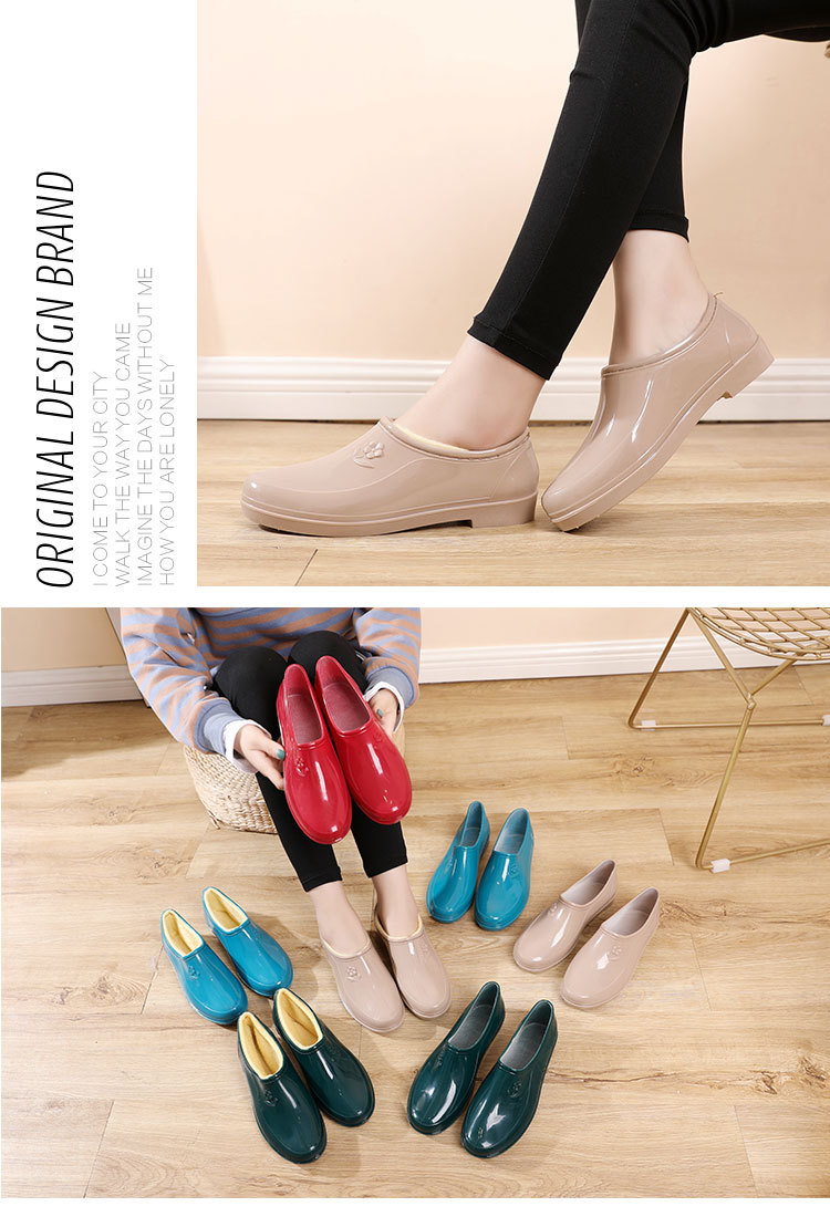 봄과 가을 Yuanbao 짧은 장화 여성용 주방 장화 따뜻한 평면 미끄럼 방지 워터 슈즈 여성용 여성용 내마모성 저상 워터 부츠