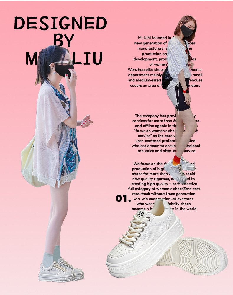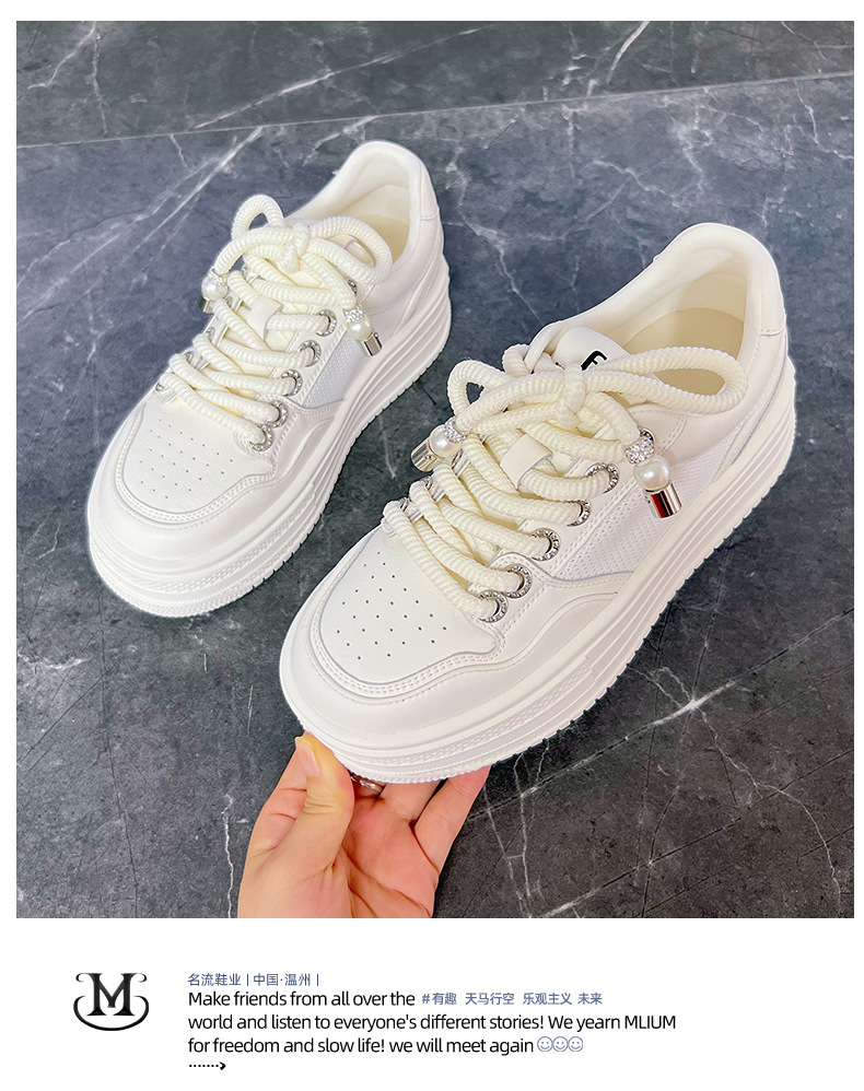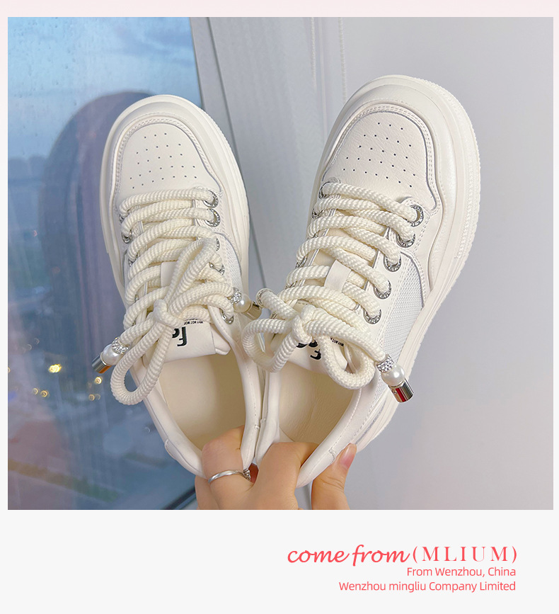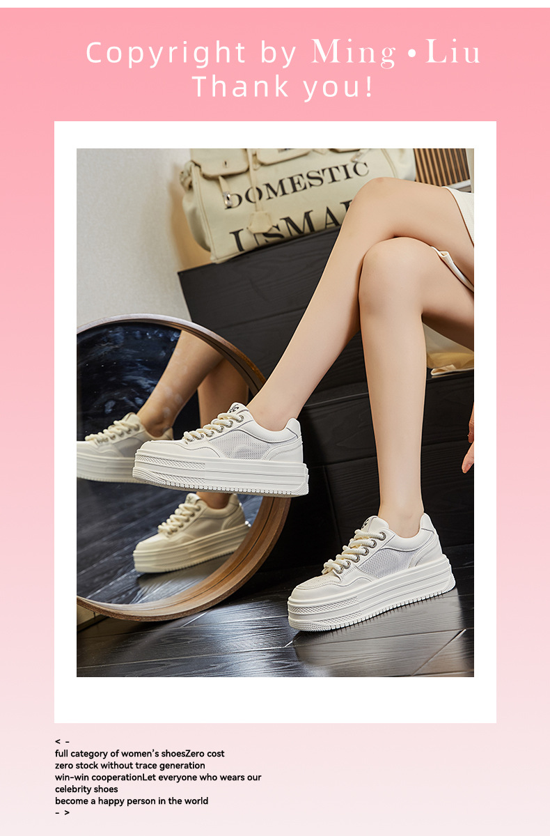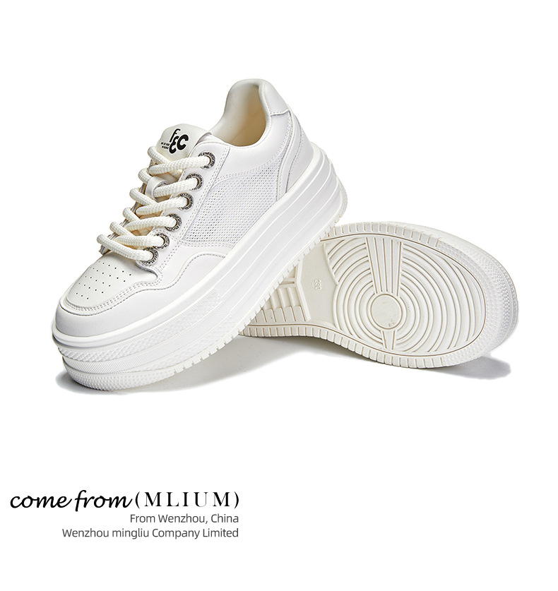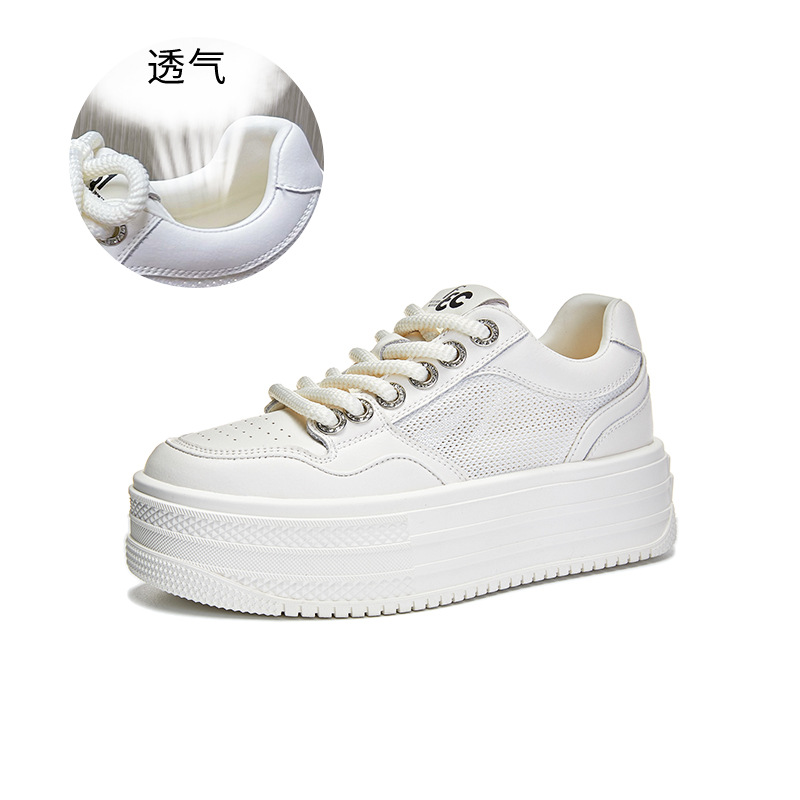 2025 여름 신상 천연 가죽 화이트 슈즈 여성용 메쉬 통기성 두꺼운 밑창 신발 캐주얼 다용도 키높이 운동화스토어 가기