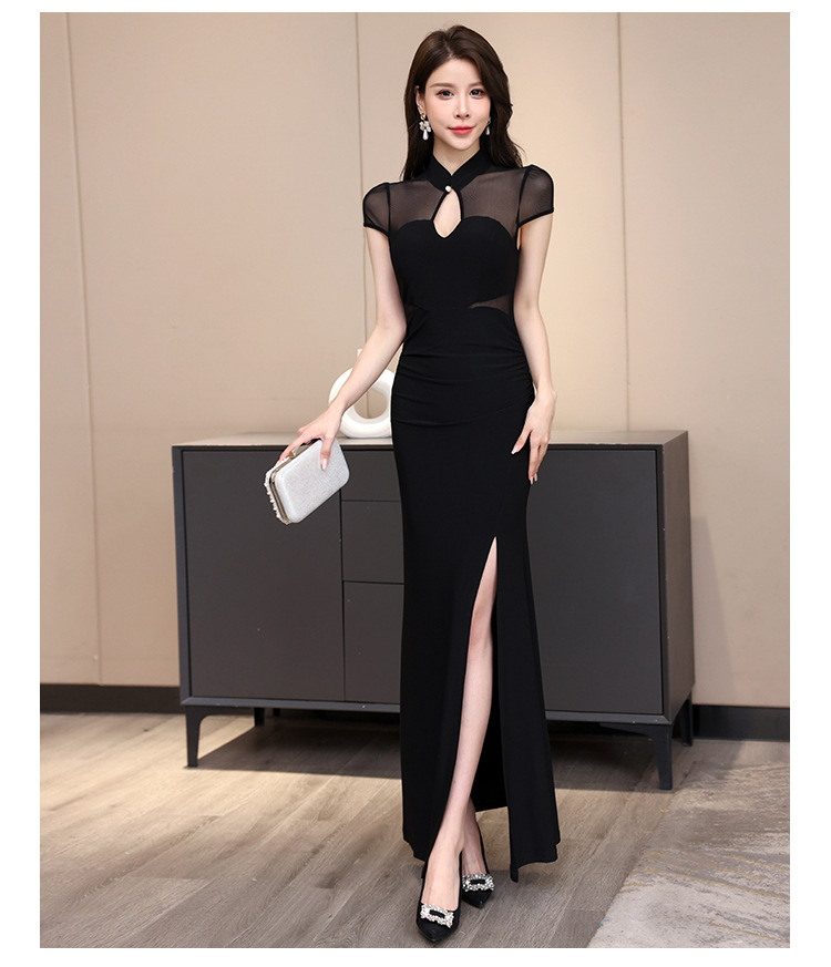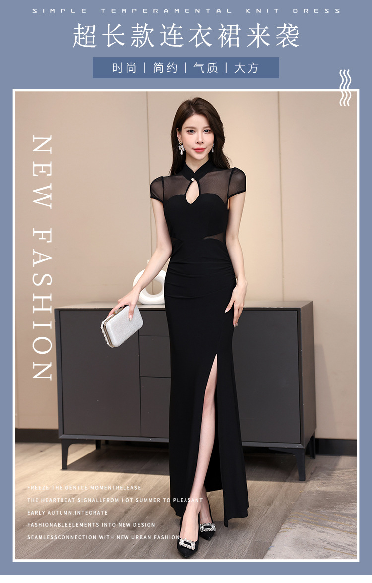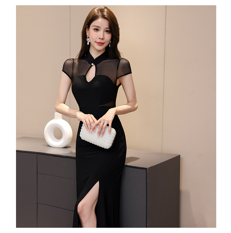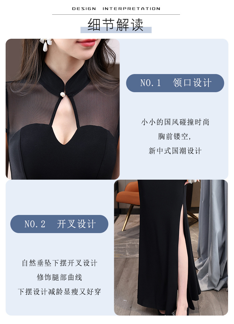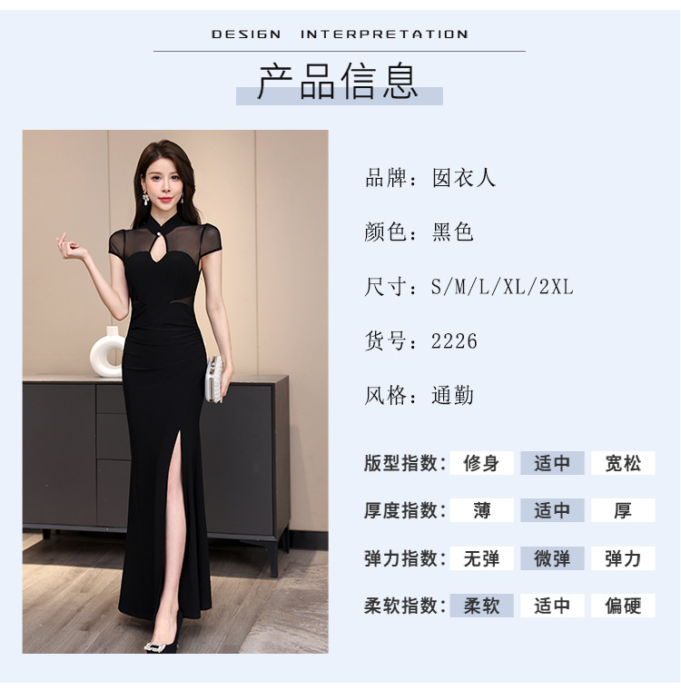 새로운 스타일 우아한 저녁 원피스 긴 원피스 섹시한 원피스 새로운 중국 스타일 개선 된 청삼 스커트 짧은 소매 긴 2226스토어 가기