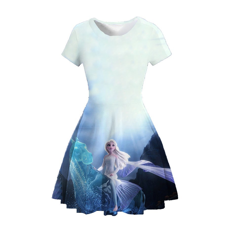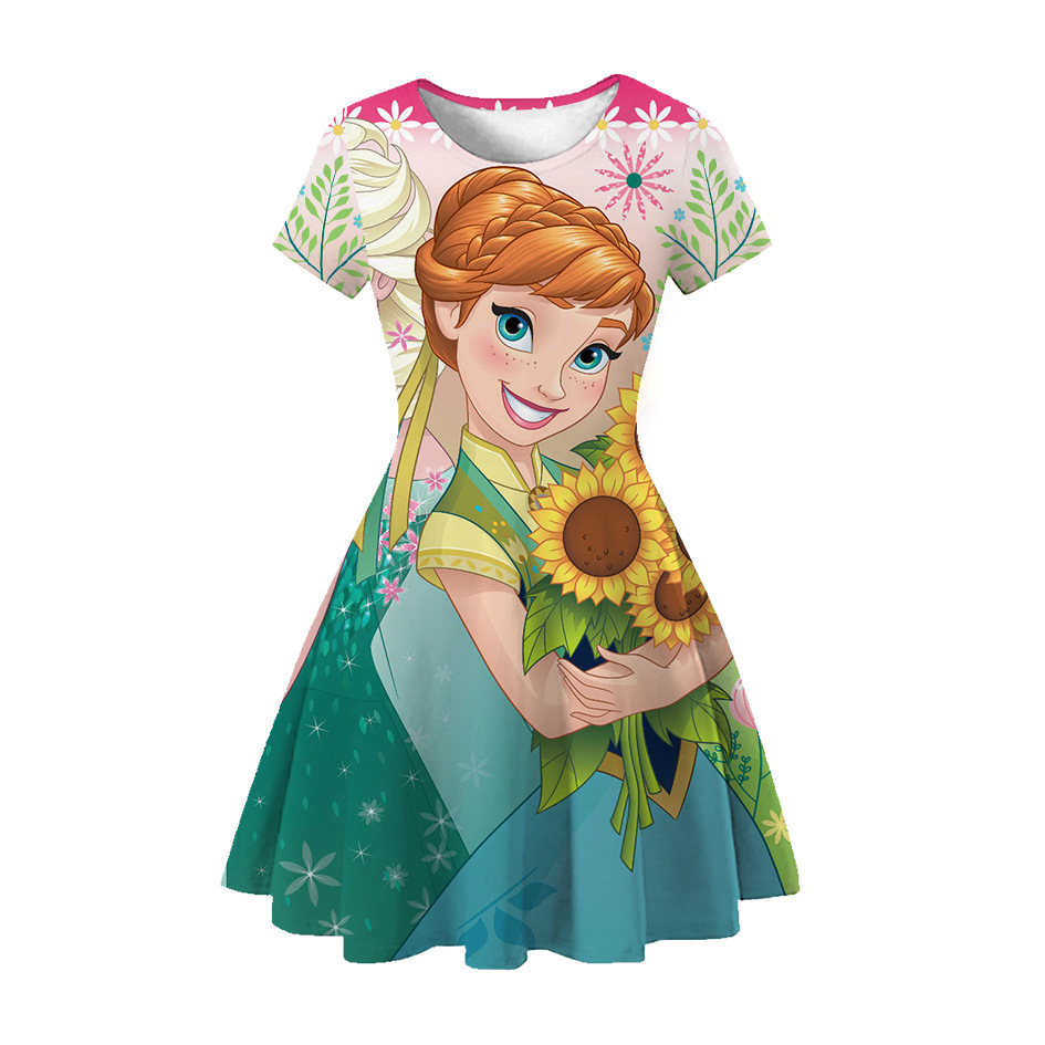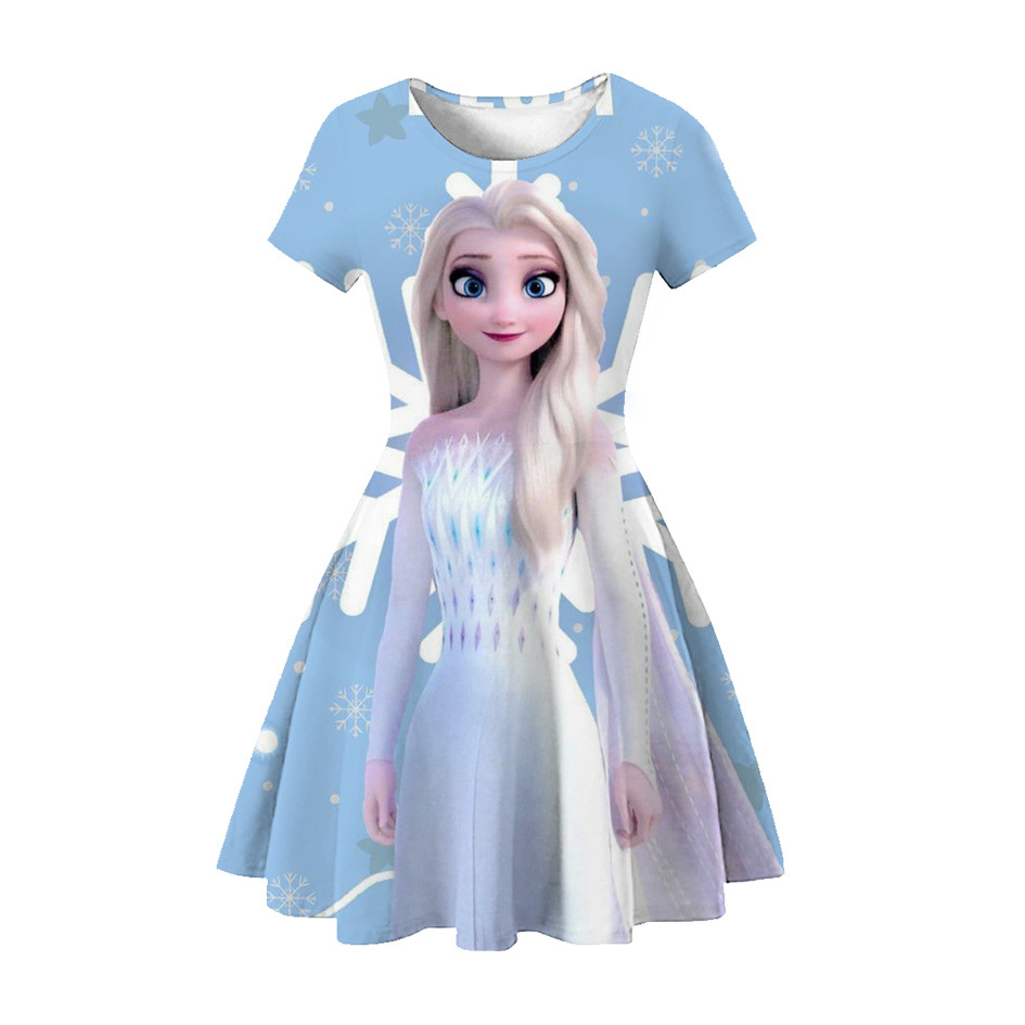3D 인쇄 Disi-ni 냉동 어린이 치마 엘사 공주 원피스 짧은 소매 원피스 소녀 원피스