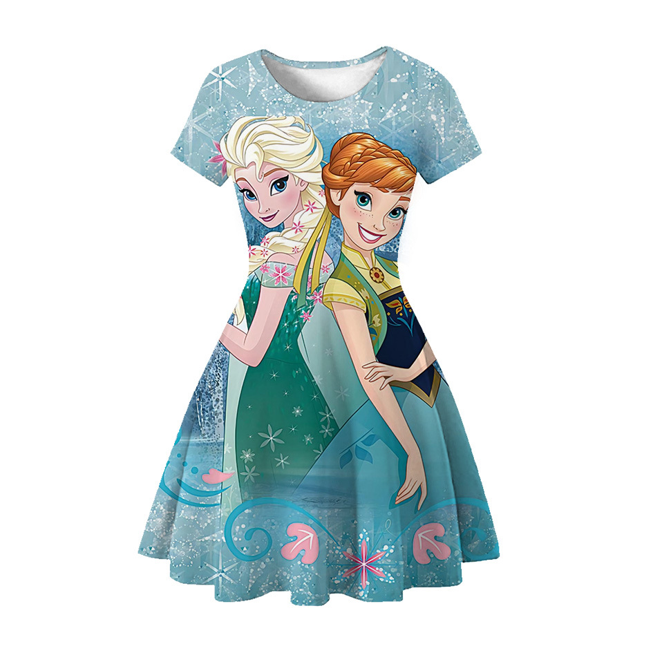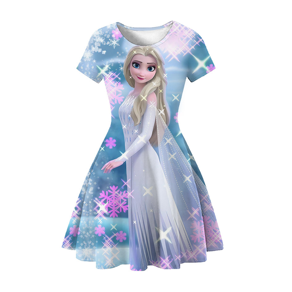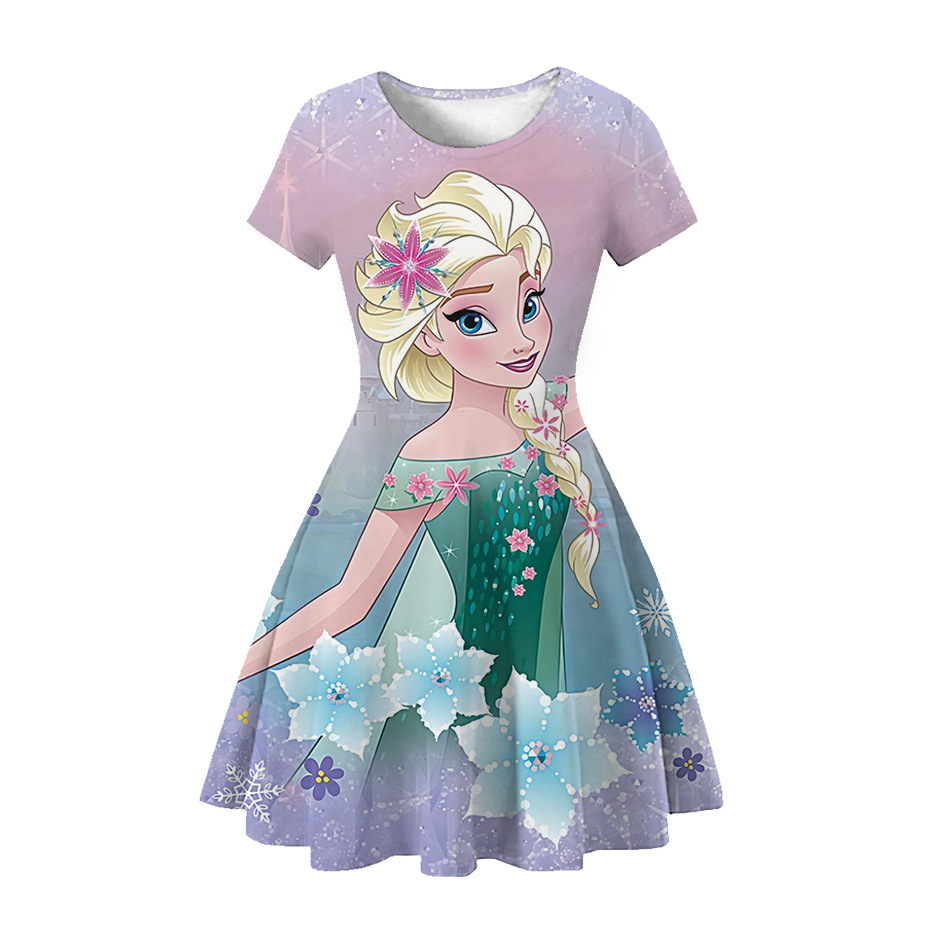 3D 인쇄 Disi-ni 냉동 어린이 치마 엘사 공주 원피스 짧은 소매 원피스 소녀 원피스스토어 가기