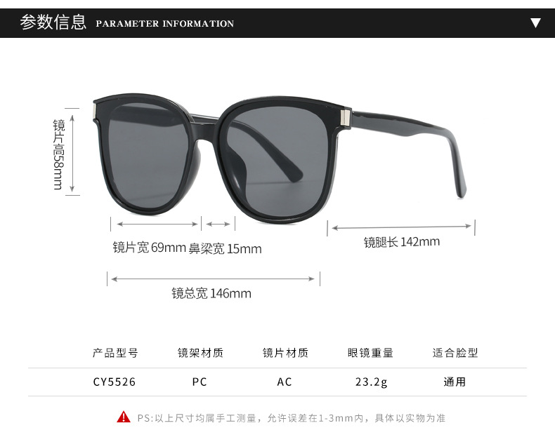 새로운 한국 패션 박스 선글라스 빈티지 라이스 네일 리틀 레드 북 같은 스타일 선글라스 하이 센스 안경 5526