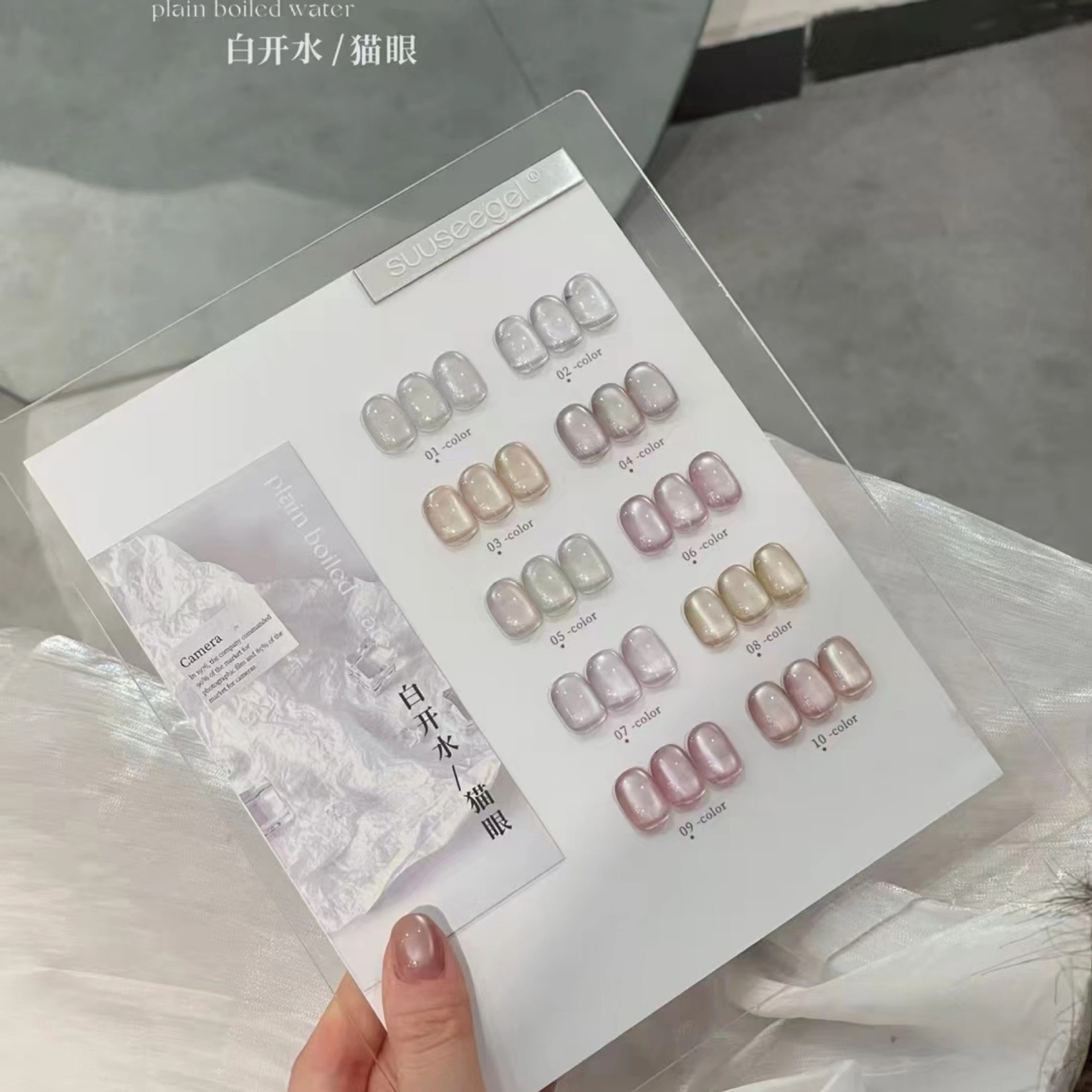 빔 색상 10 색 흰색 끓인 물 고양이 눈 얼음 투과성 유리 구슬 고급 파우더 슈퍼 플래시 새로운 네일 샵 특수 작은 접착제 세트스토어 가기