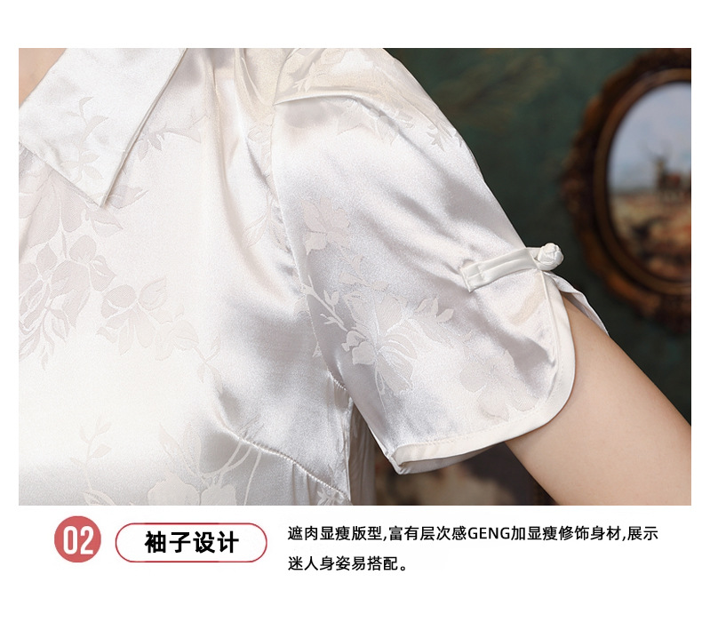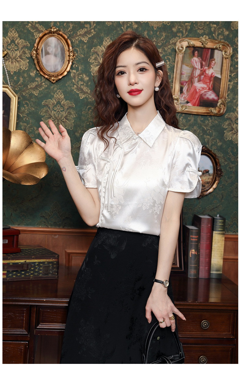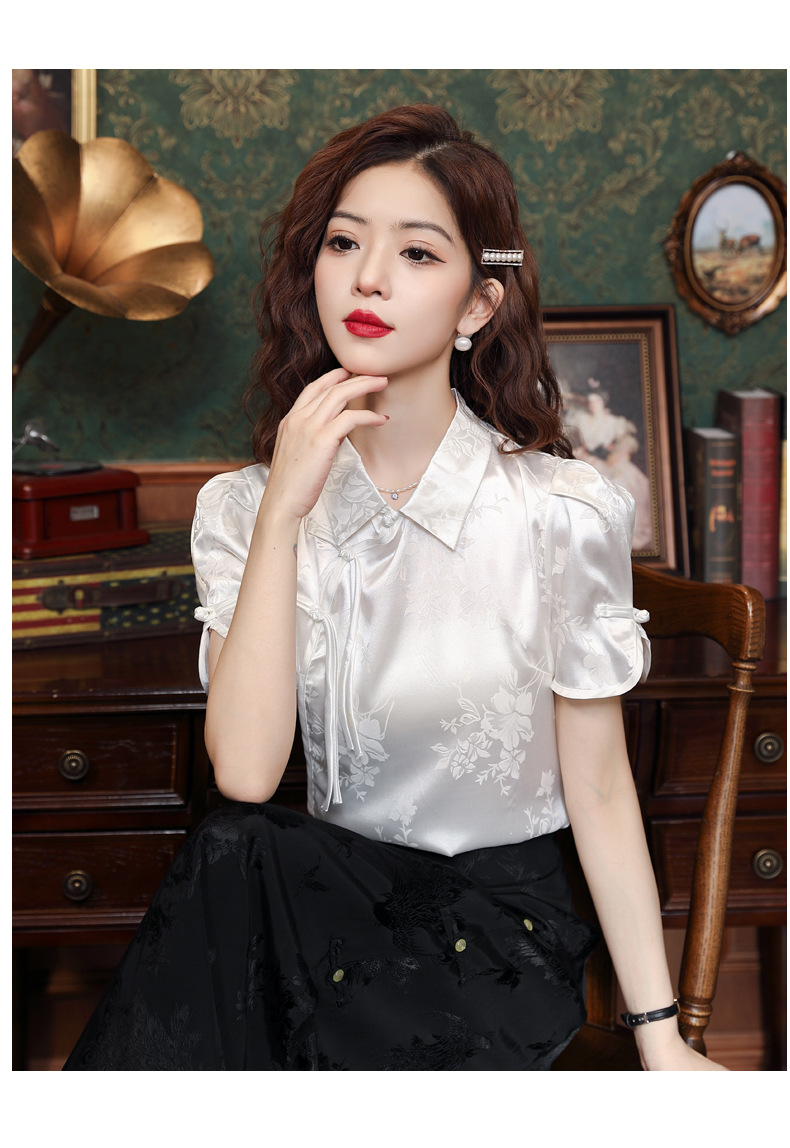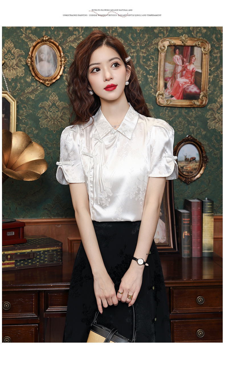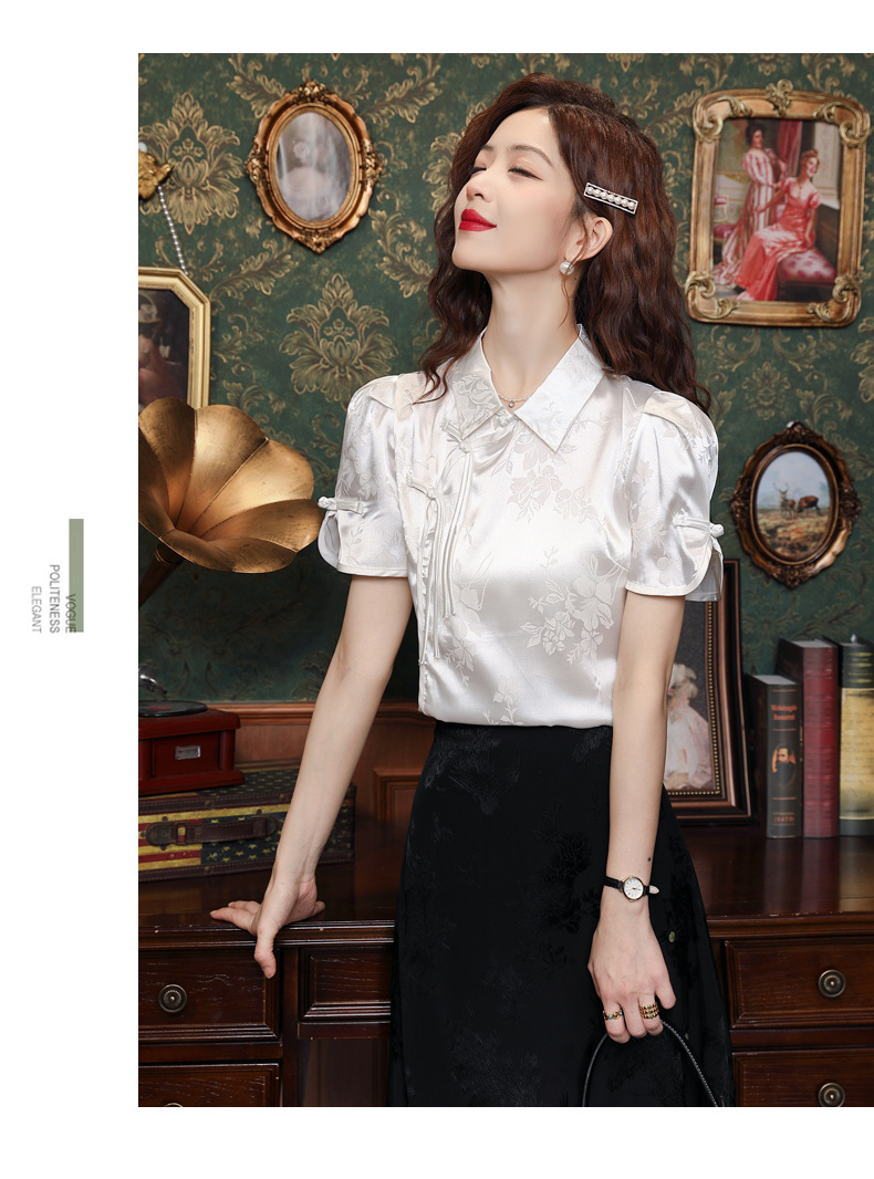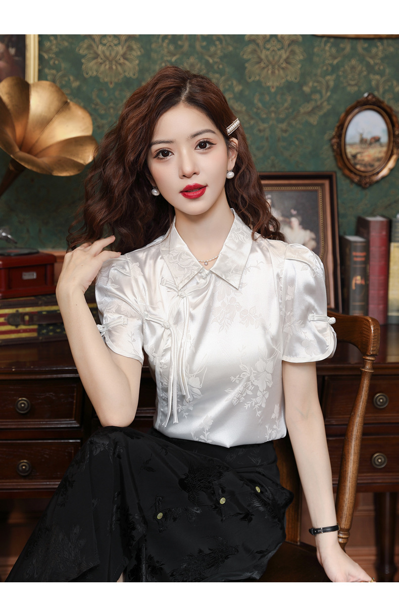 국경 간 상품 소스 2024 여름 새로운 중국 스타일 개선 된 인형 칼라 반팔 슬림 핏 슬리밍 쉬폰 셔츠 블라우스