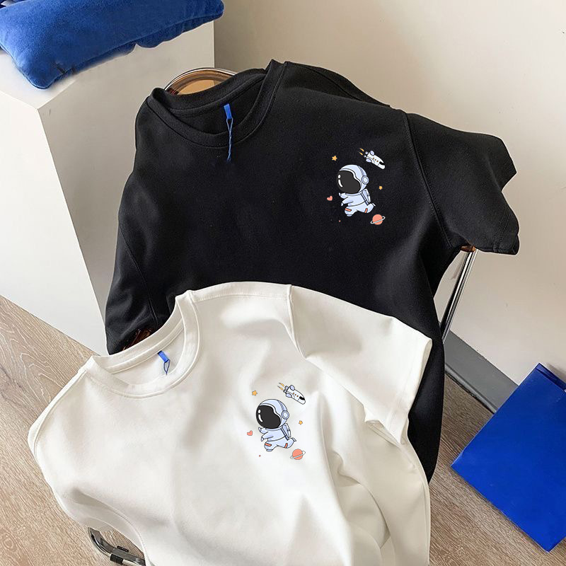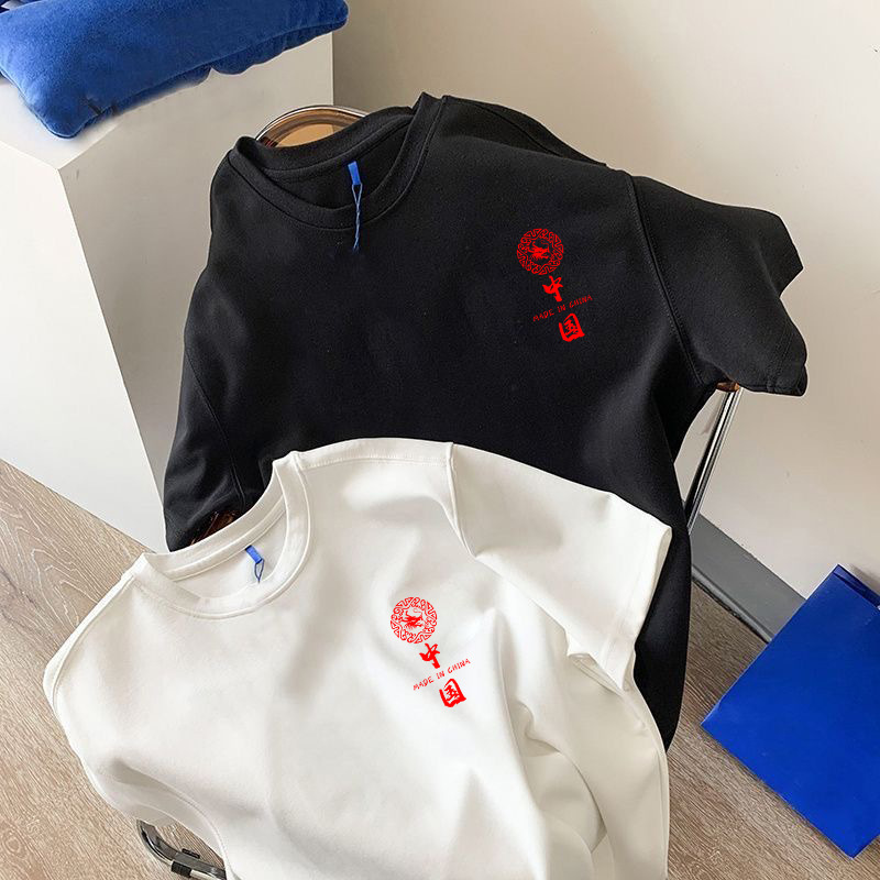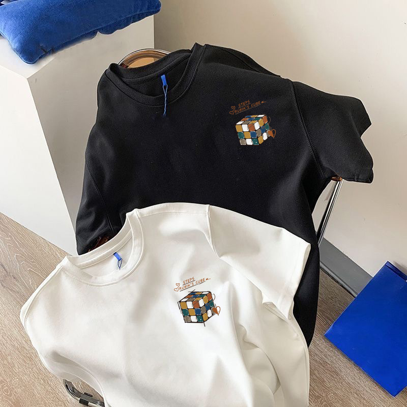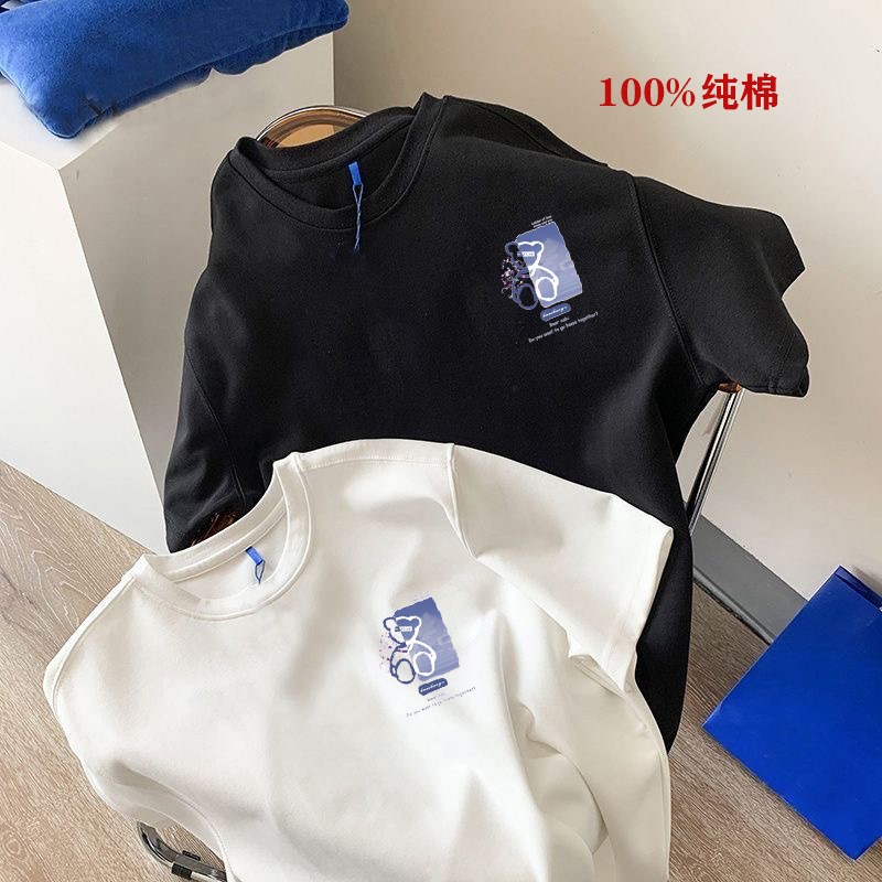 흑백 순면 티셔츠 여성용 2024 년 새 여름 느슨한 어깨 인쇄 반 소매 티셔츠 내부 탑스토어 가기
