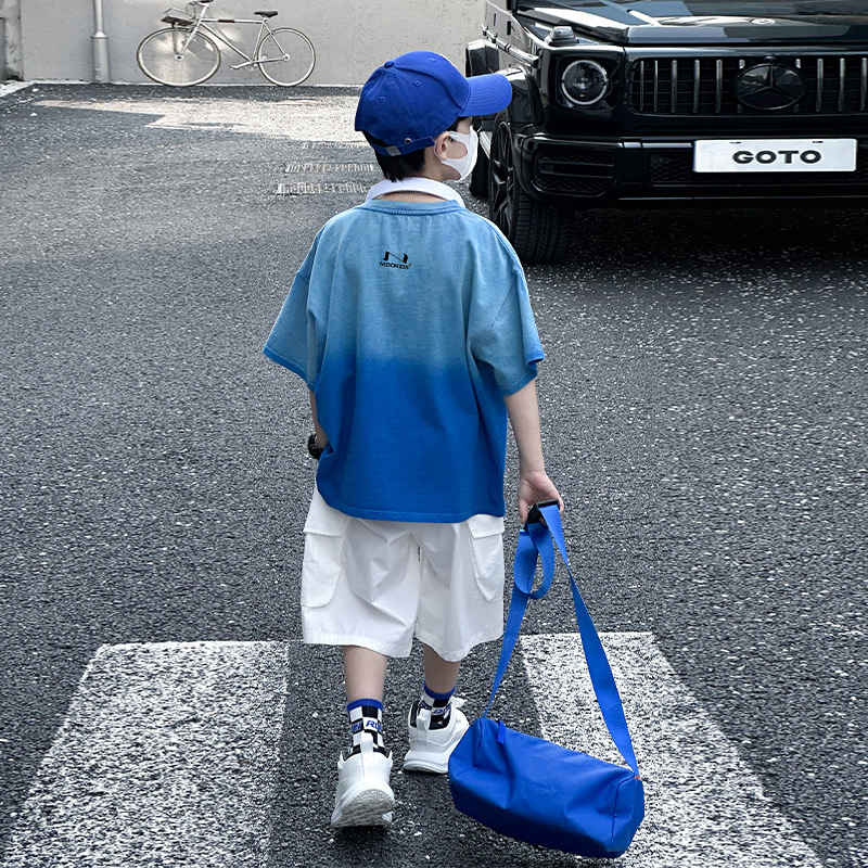 여름 cuhk 소년 반팔 티셔츠 새로운 아동복 어린이 소년 편지 t 성격 트렌디 한 멋진 ruffian 잘 생긴 최고 세대 헤어스토어 가기