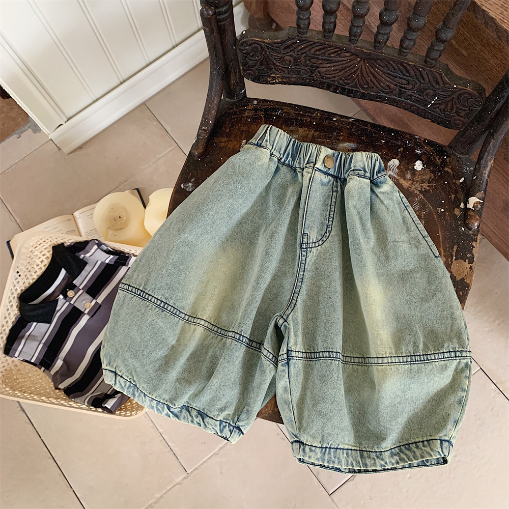 Montaigne 어린이 바지 2024 여름 새로운 한국 스타일 디자인 데님 바지 남자와 여자의 보물 풀기 버전