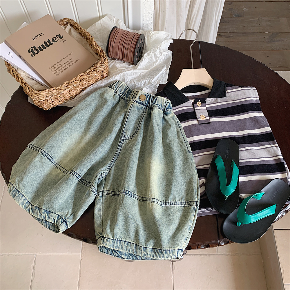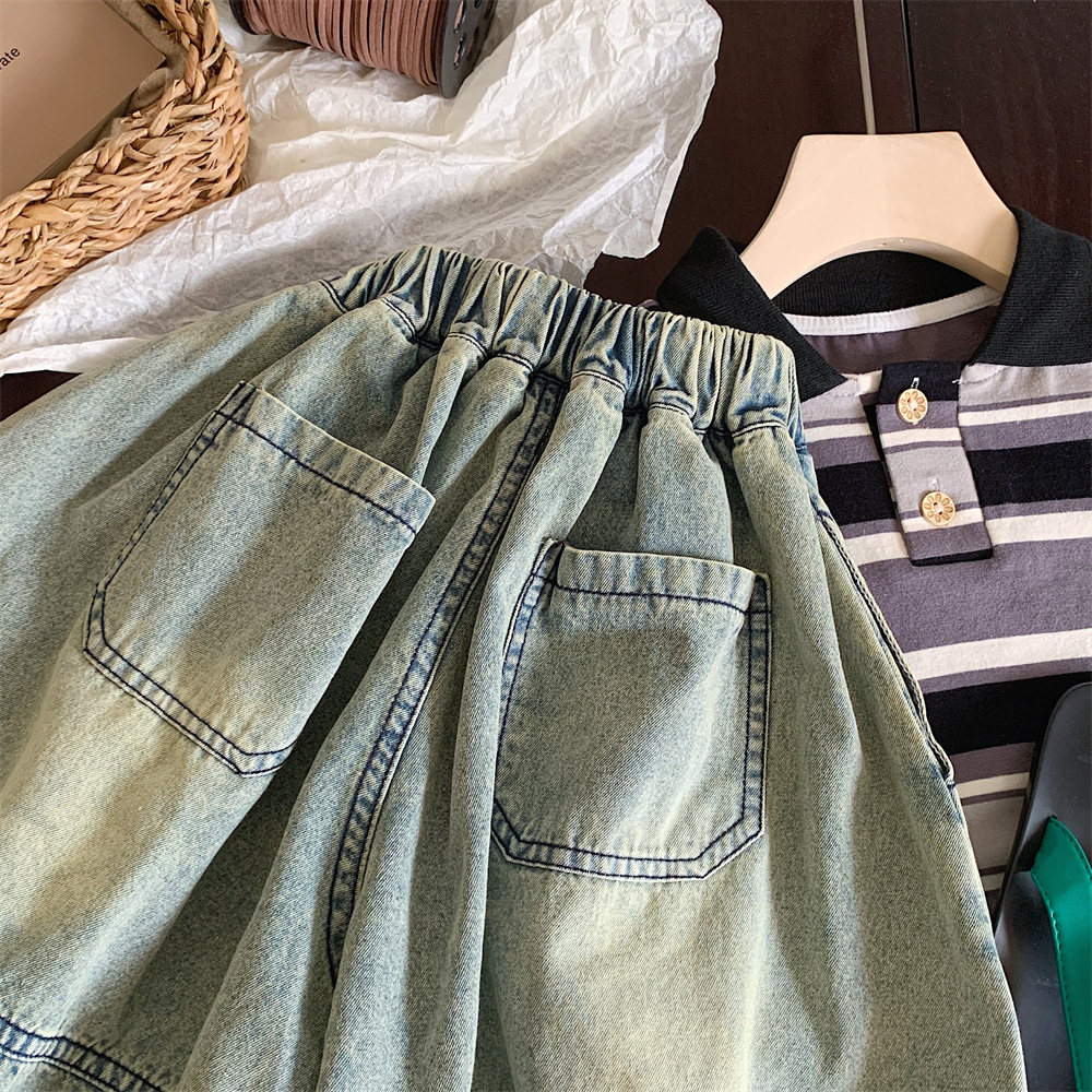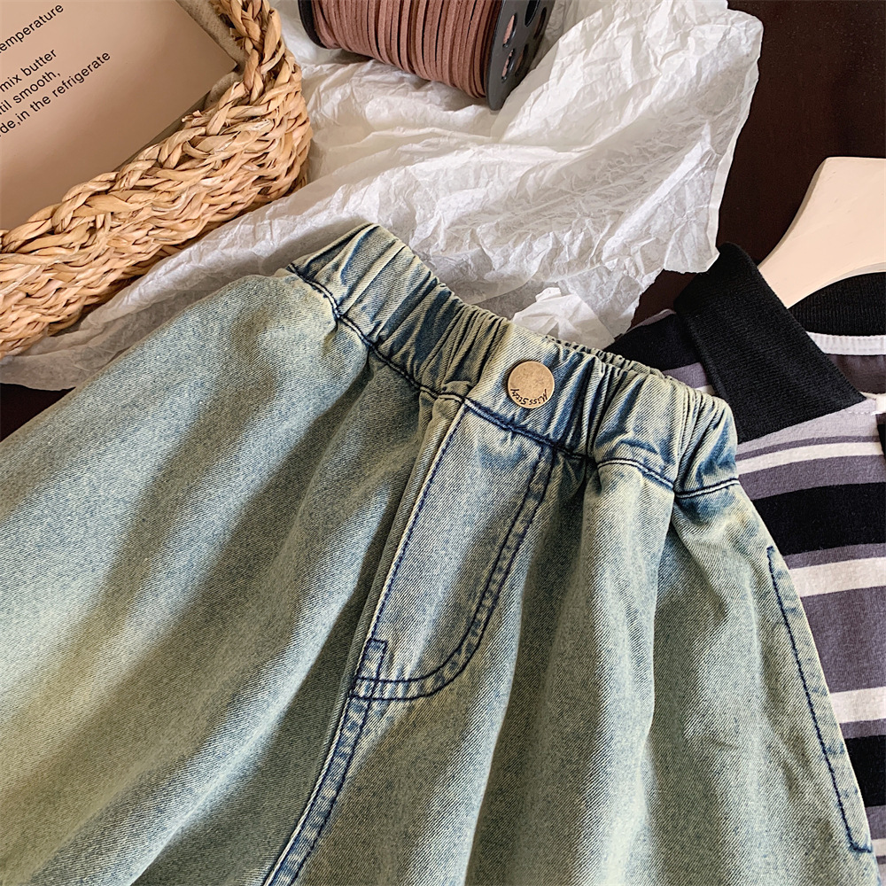 Montaigne 어린이 바지 2024 여름 새로운 한국 스타일 디자인 데님 바지 남자와 여자의 보물 풀기 버전스토어 가기