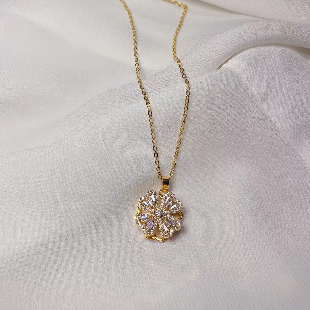 새로운 베어링 회전 목걸이 풍차 해바라기 지르콘 펜던트 틈새 디자인 높은 감각 구리 펜던트 여성 보석