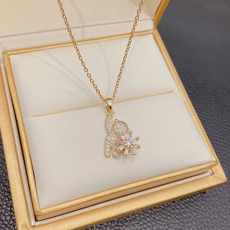 새로운 베어링 회전 목걸이 풍차 해바라기 지르콘 펜던트 틈새 디자인 높은 감각 구리 펜던트 여성 보석스토어 가기